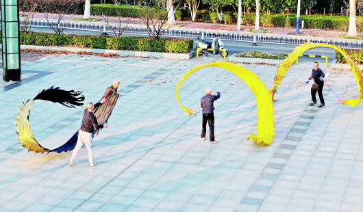 2月16日清晨,城区中央公园里,晨练的市民将“彩带龙”舞动得虎虎生风,用健康娱乐的方式欢度新春佳节。据了解,舞“彩带龙”既能锻炼身体,又能展示中国的传统文化。 本报记者 岳阳 摄