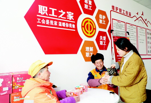 “有了驿站真好,可以来这里倒开水、加热饭菜,暖和暖和。”2月8日,环卫工人杨光明忙完其负责路段的扫雪除冰工作后,和同事走进位于裕安区闻堰路上的户外劳动者工会服务驿站(西环所办公室),准备加水、休息。 自六安出现低温雨雪冰冻天气以来,户外劳动者的冷暖牵动着工会“娘家人”的心。连日来,市总工会多方联系采购了饼干、方便面、面包等慰问物资,及时送到奋战在扫雪除冰工作一线的公安交警、城管、公交司机等人员手中。同时选定城区20个流量较大的工会驿站,线上线下联动开展“工会送温暖 暖心迎新春”活动,为快递员、外卖员、环卫工人、网约车司机等新就业形态劳动者免费提供泡面、热茶等,持续为广大户外劳动者提供“遮风避雨、热饭充电”的贴心服务。 本报记者 邱杨/文 王丽/图