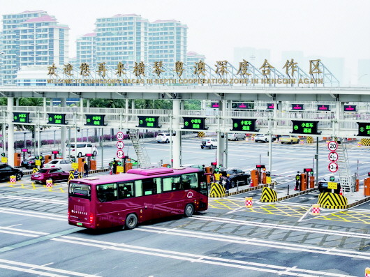 作为中国实施高水平制度型开放的重大探索,横琴粤澳深度合作区3月1日零时正式实施封关运行,这标志着构建与澳门一体化高水平开放新体系迈出关键一步,有助于丰富“一国两制”实践探索,更好推动澳门融入国家发展大局。图为横琴大桥“二线”通道海关监管区(无人机照片,2月29日摄)。 新华社记者 刘大伟 摄