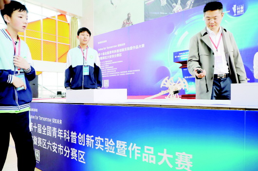 4月21日,由市科协、市教体局、团市委联合主办,市科技馆承办的第十届全国青年科普创新实验暨作品大赛安徽赛区六安分赛区比赛,在六安一中东校区举行,来自全市7所学校50支参赛队伍的百余名选手现场以“未来太空车”为主题进行竞技。 比赛通过开展富有创新精神的实验设计,利用制定动力系统,自选材料制作装置,在赛道上完成行驶和攀爬等制定任务,旨在考察青少年发现问题、解决问题和动手实践能力,激发大家的好奇心与想象力,增强科学兴趣、创新意识、创新能力和团队协作精神。 图为参赛选手在进行“未来太空车”攀爬竞速比赛。 本报记者 田凯平 摄