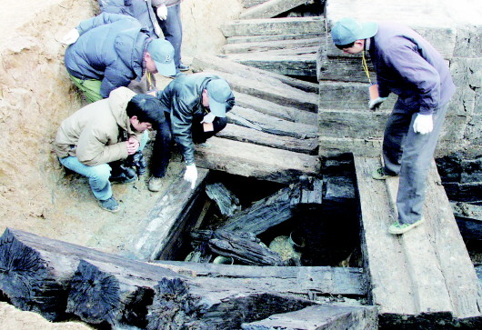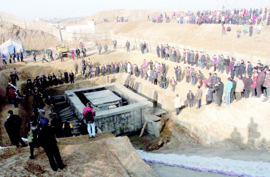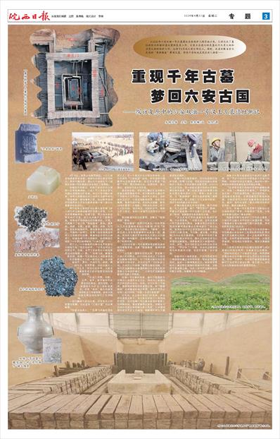 2007年1月7日,考古工作者在汉墓发掘现场。 4月16日,文物修复工人正在对汉墓木质文物进行修复。 玉印坯 出土的甜瓜子 盖板缝中发现的黍 出土的籼稻和瓜子 4月16日,皖西大地春风拂面,一片片油菜地透着浓浓绿意,弯曲的水泥公路穿村而过,劈开平畴沃野,通达位于金安区三十铺镇的双墩一号汉墓遗址本体保护工程现场。 俯瞰宏大的墓穴,和两千多年前的文明第一次零距离接触。几名工作人员还在偌大的墓坑里静静地忙碌着。经过几年的精心修复,被称为安徽首次出土的西汉王陵特有的“黄肠题凑”葬制雏形已成。经过技术处理后的黑色而又坚实的栎木块被一层一层小心翼翼地安放归位。 同行的市文物保护中心副主任徐明飞和六安汉代王陵墓地管理所负责人李斌,几乎天天要亲临现场。徐明飞说,因为每天和这些文物打交道,自己也对此产生了浓厚兴趣。他将我们带到墓坑边的展板前。这里,详细展示了出土的“黄肠题凑”葬具、漆木器、铜器、玉器、金箔、银箔、兵器、车马器、封泥和植物种子、果实等各类文物的照片。手指每一张照片,徐明飞都能娓娓道来照片文物背后的故事。看着眼前珍贵的文物照片,听着徐明飞的生动解说,旋即将我们带进了一个梦幻而神秘的“六安古国”— 照片上,一小堆黑色的酷似瓜子形状的小颗粒引起了我们的好奇。“这是当时出土的甜瓜子。你看,瓜子下面黄色的小颗粒就是当时的粮食—黍。”徐明飞说,根据专家推测,双墩一号汉墓的主人刘庆希望在死后能够过上生前一样的生活,小到食物种子、果实,大到车马、兵器,再到生活、装饰用品,刘庆的墓穴几乎汇齐了他的生前所用,也能由此窥见他生前所能享受到的尊贵待遇。 “从出土的黍、籼稻、瓜子、枣子、栗子等种子和果实可以看出,西汉时期,六安国境内的农业已经比较发达,刻有‘共府’铭文的错银铜壶和出土的漆木器、金银玉器也能证明当时的制作工艺很精湛。” 一座沉睡两千年的汉墓,可诉说古人的智慧与荣耀,也可追寻“六安古国”的文明根源。 “你看这张照片。”徐明飞手指的那张照片上,是一个看似方头小哑铃的物件。这个东西叫“六安飤丞”封泥,封泥堪称中国最早的文件保密手段,在当时主要起“保密”作用,因为时间久远,材质特殊,意义重大,能保存下来尤其珍贵。 据史料记载,刘庆的父亲胶东王刘寄与淮南王叛乱事件牵连,但汉武帝却大胆启用了刘寄的小儿子刘庆,首封为六安王。刘庆被封王以后,心里自知武帝施恩,自然小心翼翼,做事中规中矩,深受民众拥戴,武帝也对其表现十分满意。刘庆在位38年,死于公元前83年,谥为共王。刘庆和其子、孙共五代六安王,维持六安稳定的局面长达130年。 朝廷根据刘庆生前表现,赏赐其“黄肠题凑”葬制。 “黄肠题凑”是西汉特有的一种体现墓主人生前显赫社会地位的葬制。所谓“黄肠”,即去皮后黄心的柏木,“题凑”,枋木的端头全部朝着棺椁中央层层平铺、叠垒。而刘庆的墓所用木材均为大别山区的栎木,属于就地取材,没有使用黄心柏木,体现了皖西特色。 2006年双墩一号汉墓因修建合武铁路而被抢救性发掘,从此“黄肠题凑”被揭开神秘面纱。 “这是属于国家的珍贵文物,更是属于六安人民的瑰宝。2011年批准成立了六安汉代王陵墓地管理所,专门负责王陵区的日常管理和文物保护,并先后征用了200多亩土地,为保护工作提供了重要的基础保障,六安汉代王陵墓地也被国务院公布为第七批全国重点文物保护单位。”六安汉代王陵墓地管理所负责人李斌说。 双墩一号汉墓的发掘,填补了我国西汉时期古六安国历史的空白,对研究六安国的历史和汉代的政治、经济、文化以及工艺技术、墓葬制度等都具有重要价值。而“黄肠题凑”在安徽省内首次发现,该考古项目当年即入选2006年“全国十大考古新发现”。 近年来,在上级文物部门和市委、市政府的重视支持下,市文旅局实施了一系列保护项目,其中双墩一号汉墓本体保护修复工作即将完成,墓室原貌得以复原,埋藏地下的部分珍贵文物即将与世人见面;六安国时期的诸多历史文化谜团,借助现代考古力量有望逐步揭开。 双墩一号汉墓发掘后,实行的是原址保护方案。徐明飞介绍,目前进行的遗址本体保护工程是一个系统性综合性项目,从2020年正式实施,第一阶段是墓坑的防水防潮和墓坑壁的复原,第二阶段是墓坑内木质文物和石质文物的保护工作。现第一阶段已完成,为“黄肠题凑”椁室的复原提供了重要的保存环境,第二阶段工作正在有序推进,预计今年8月底之前全部完工。 双墩汉墓是南北并列双冢墓,南为刘庆墓,北为王后墓,属于“同茔异穴”葬制。尽管王后墓距离一号汉王墓几步之遥,但记者了解到,该墓暂时没有发掘的计划。 “这也是我们目前遵循的文物保护原则,不主动发掘。”李斌介绍,当年在双墩一号汉墓发掘的同时,安徽省考古所组织人员对双墩村周边重点区域也进行了考古钻探,发现在15平方公里范围内分布着一个以四对八大墩(双墩、马大墩、高大墩、三星庙墩)为中心的古墓葬群,大约有40余座古墓葬,经专家分析研究,确认这里就是西汉六安国的王陵墓地,埋葬着西汉六安国刘庆、刘禄、刘定、刘光四代封王夫妇和其他贵族成员。“目前除了一号墓,其余的王陵暂时都没有发掘的计划,但我们都做了保护措施。” 穿越村庄一路向
