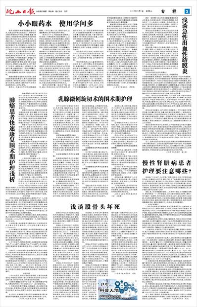 肺癌是胸外科常见病,其好发于40岁以上中老年人群,近年来随着人们生活方式改变及自然环境恶化,其发病率逐年增高且趋于年轻化。统计数据显示,肺癌的发病率及死亡率均位居恶性肿瘤首位,严重威胁居民的生命健康。目前,手术切除仍是治疗中早期肺癌的首选方法。 肺癌的发病机制:肺癌的致病因素主要包括吸烟、职业暴露、空气污染、电离辐射、饮食、遗传、肺部病史等,健康的生活方式可以有效的预防肺癌。早期症状不明显,晚期可出现频繁的咳嗽、咳痰、胸闷气短,甚至呼吸困难。高危人群建议每年查一个低剂量的胸部CT。 肺癌手术治疗方法:有开放手术和腔镜手术,腔镜手术具有创伤小、出血少、术后恢复快、切口美观等优势,随着医疗技术的不断发展,胸腔镜根治术成为肺癌的主要手术疗法。围术期肺癌患者将会出现不同阶段相对稳定的症状群,抓住患者围术期快速康复的契机,提高患者生活质量。 快速康复外科是通过外科麻醉、护理营养等多学科协作对围术期的临床路径予以优化,从而缓解手术应激,保证患者术后安全,缩短患者术后住院时间,促进病人康复。现已广泛应用于外科、骨科,围术期护理至关重要。具体快速康复围术期护理策略如下。 术前护理 1.术前访视与宣教:术前一天手术室访视护士通过多媒体、口头、视频等方式向患者及家属介绍麻醉方式过程、麻醉清醒时状态及配合要领、肺呼吸锻炼,缓解患者紧张恐惧情绪。仔细询问病史(包括伴随疾病、手术史、过敏史),做好术前评估。手术日接患者入手术室,和患者积极交流,缓解患者紧张焦虑情绪,利于配合手术进程顺利。 2.饮食护理:术前6小时禁食(肉、脂肪、煎炸类术前8小时及以上),术前2小时禁水(未合并糖尿病者推荐术前10小时饮用12.5%的碳水化合物饮品800ml,术前2小时饮用≤400ml)。按照患者手术顺序,对于手术时间安排较晚的患者在禁食期间可适当补液或进食,以防低血糖情况的发生,提高患者的手术耐受程度。手术室护士与胸外科护士做好沟通,如有手术时间变动,应及时调控,避免影响患者饥饿的不适感。 术中护理 1.预防低体温:低体温是指核心温度低于36°C。术前禁食水,加上紧张、焦虑情绪也会令患者发生寒战,还有年龄和麻醉的影响,手术区域的消毒和手术野的暴露都会导致患者体温降低。我们采用手术室环境加温、加温毯、输液加温仪、给患者加盖被以及冲洗液的加温等复合加温措施应用,防止手术时间长、暴露时间长、冲洗液温度低、出血量多等致患者低体温发生。研究表明预防低体温发生,促进手术时间的缩短以及麻醉的康复。 2.预防性抗生素应用:预防切口感染,规范应用抗生素。术前在切开皮肤之前预防性应用抗生素,手术超过3小时或出血>1000ml可在术中重复使用一次,有助于降低感染的发生率。 3.监测血糖:询问患者有无糖尿病史,术前禁食和手术应激会导致血糖降低,术中监测血糖并调控≤8.33mmol/L。 4.术中输液以及循环管理:术中用平衡液维持出入量平衡,避免输液过度或不足,辅助应用血管收缩药物以防止术中低血压,严格控制补液量,液体出入量零平衡补液,高危或失液量大(失血>10ml/Kg、蛋白质丢失、体液转移),提倡目标导向液体治疗(GDFT)进行维持液体治疗,推荐使用羟乙基淀粉。 5.术中肺保护:规范吸氧浓度,自麻醉诱导至单肺通气前,予100%氧气,单肺通气后,予50%氧气,手术结束,依据血氧饱和度调整吸氧浓度,防止过度通气,做好肺保护。 6.做好压力性损伤预防:患者通常采用左侧或右侧卧位,在摆放体位前检查床单是否平整干燥,防止皮肤磨损和受压。术前评估患者的体质指数(BMI),受压部位放置软垫和防压贴预防压疮。 7.预防下肢深静脉血栓的形成:老年肺癌手术患者下肢深静脉血栓形成的概率大,关注预防血栓形成的护理。一般采用Caprini评估表进行术前血栓风险评估,分为无风险、低危、中危、高危 4 级。针对中、高风险者,术中手术室护士不宜进行下肢静脉穿刺输液,采取机械预防措施,应用理疗仪器进行被动按摩,促进患者下肢静脉血液循环。 术后护理 1.手术完成后,即刻对患者加强保暖,从复苏室将患者安全平稳地送回病房,强化对患者各项生命体征变化的监测力度,同时给予吸氧,保持患者的呼吸通畅。 2.麻醉未清醒者去枕平卧头偏一侧,麻醉清醒者予垫枕,无需去枕平卧6小时,抬高床头30°,自行舒适体位。 3.术后采用多模式镇痛,加强宣教,教会患者正确评估疼痛,提高患者对疼痛知识的掌握程度。鼓励患者尽快恢复正常饮食,早期下床活动,做好胸腔引流管护理。 综上所述,快速康复护理应用于肺癌患者围术期,能提高其护理满意度,促进其早日康复,值得临床推广应用。 (六安市人民医院手术室 张晓琳)