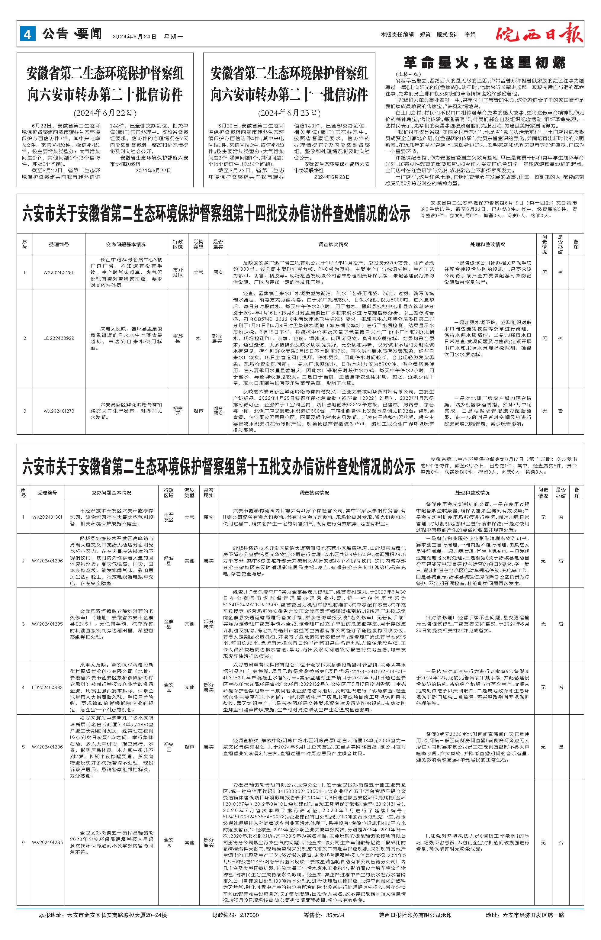 安徽省第二生态环境保护督察组向六安市转办第二十批信访件