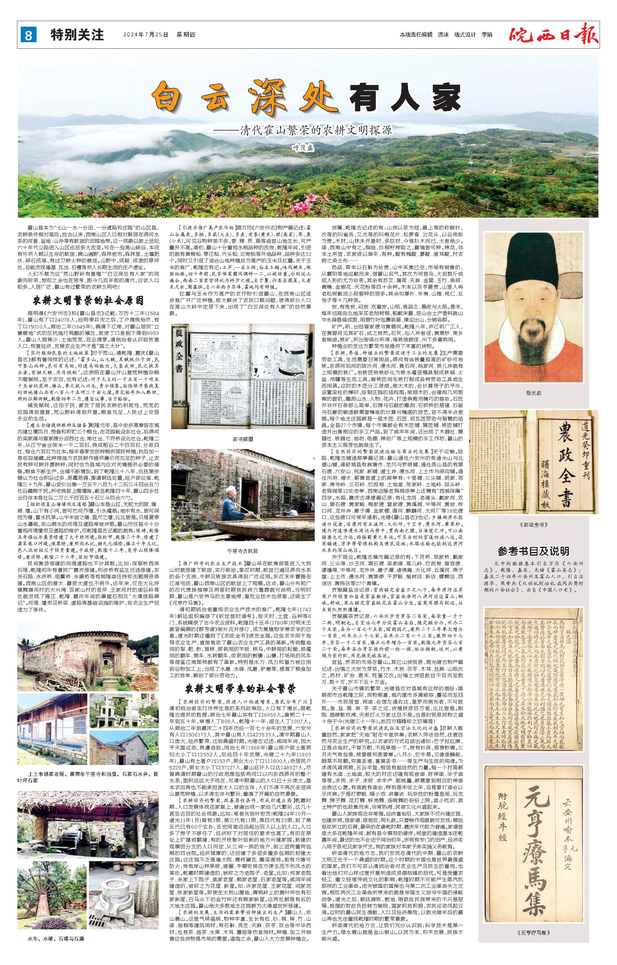霍山县本为“七山一水一分田、一分道路和庄园”的山区县,农耕条件相对落后。自古以来,西南山区人口相对聚居在淠河水系的河套、盆地、山冲等有畎亩的田园地带。这一现象以致上世纪六十年代公路进入山区也没多大改变。可在一些高山峡谷,本没有可供人赖以生存的畎亩,满山遍野,森林密布。森林里,土壤肥沃,碎石成堆,有过刀耕火种的痕迹。山野中,成畦、成垄的草坪处,总能发现墙基、瓦当、石槽等供人长期生活的庄户遗址。 人们不禁为这“荒山野岭有垦殖”“白云深处有人家”的现象而称奇,惊叹之余也在思考,距今几百年前的清代,应该人口较多,人居广泛,霍山有过繁荣的农耕文明吧! 农耕文明繁荣的社会原因 据明清《六安州志》和《霍山县志》记载:万历十二年(1584年),霍山有丁口24078人。经明季兵灾之后,丁户凋残殆尽,有丁口15010人。顺治二年(1645年),满清下江南,对霍山居民“立寨栅地”式的反抗施行残酷的镇压,致使丁口急剧下降到6959人。霍山人烟稀少,土地荒芜,百业凋零。清统治者认识到恢复人口,恢复经济,发展农业生产才是“国之大计”。 【实行鼓励民垦的土地政策】对于荒山,清乾隆、嘉庆《霍山县志》都有着同样的记述:“霍多山,山无赋,其赋统归于田,民可垦山而种。邑旧有马场,所遗马场数处,久垦成田,民之执其业者,有租无赋,用存规制”。这表明在霍山开山垦荒种植杂粮不缴赋税。至于农田,也有记述:对于无主的一千五百一十顷五十五亩的荒田、塘山,奉文拔入兴屯,责令报垦。后陆续开垦恢复的田地塘山共有八百八十五顷三十亩七厘。原定按年加入熟田,照例征解田赋。乾隆四年二月,遵旨议事,准于豁除。 减免赋税,还田于民,激发了居民农耕的积极性,荒芜的田园得到垦复,荒山野岭得到开垦。粮食充足,人民过上安居乐业的生活。 【建立仓储提供粮种及储备】乾隆元年,县令史步高奉旨在城内建立漕凤月、预备和积贮三个粮仓,在花园畈设东社仓,沿淠河的梁家滩与管家渡分设西社仓、南社仓,下符桥设北社仓。乾隆二年,从江宁省仓领米一千二百石,换成稻谷二千四百石,分派四社,每仓六百石为社本。每年春季发放种粮供居民种植,秋后加一息收回储藏。此种措施为农民耕作提供廉价而充足的种子,让农民有种可耕并愿耕种;同时也为县域内应对灾情提供必要的储备。粮食不断生产,仓储不断增加。到了乾隆三十八年,巡抚裴宗锡认为社仓积谷过多,易霉易腐,奏请朝廷处置,经户部议准,乾隆三十九年,霍山变价出售一万五千八百九十二石三斗四合五勺社谷藏粮于民。所收钱款上缴藩库。截至乾隆四十年,霍山四乡社仓仍存本息社谷二万三千四百五十石三斗四合六勺。 【组织修复山塘堰坝及道路】霍山本是山区,无较大的陂、塘、湖、堰。山下有小河,皆可拦河作堰,引水灌溉;地中有水,皆可深挖为塘,蓄水抗旱。山中半亩之塘、盈尺之堰,比比皆是。只是夏季山水暴涨,依山顺水的河堤及道路常被冲毁。霍山历任县令十分重视河堤堰坝及道路的维护。仅乾隆县志记载的就有:陈瑺,乾隆五年倡议并集资修建了太平桥河堤。张抡甲,乾隆二十年,修建了龚家巷口河堤。保黎桥,康熙间水圮,赖允元倡修。雍正十年又圮,邑人沈世柱父子捐资重建。平政桥,乾隆十三年,吴学山捐俸倡修。康济桥,乾隆二十六年,张抡甲倡建。 民间集资修建的河堤道路也不计其数。比如:保黎桥西岸石堤,乾隆初年有耆民广嘉祚修建。利涉桥有监生汪选修建。东关石路、永济桥、临薰桥、永康桥等有城隍庙住持郑先锟捐资修建。西南山区的潜太、霍英大道也不例外。近年来,仅在大化坪镇舞旗河村的大兴湾、百家山村的苍坪、王家河村的庙谷岭等处就发现了雍正、乾隆、嘉庆年间的摩崖石刻及“大清修路碑记”。河堤、堰坝及桥梁、道路等基础设施的维护,给农业生产创造力了条件。 【引进并推广高产农作物】据万历《六安州志》物产篇记述:霍山谷属类,多稻、多菽(大豆),多麦,有黍(黄米)、稷(高粱)、荞、粟(小米)。可见谷物种类不多,黍、稷、荞、粟等适宜山地生长,可产量并不高。清初,霍山十分重视水稻品种的改良,乾隆年间,引进的就有黄梅籼、零江籼、齐头籼、云南粘等外地品种,品种多达32个。同时又引进了适合山地种植且为高产的玉米及红薯。关于玉米的推广,乾隆志有记:玉芦,一名玉秫,俗名玉榴。味同粳米,绝胜他粮。四十年前,民家惟菜圃间偶种一二,以娱孩童。今则延山遍谷,西南二百里皆恃此为终岁之粮。至于薯,归类在蔬菜,大者长尺余,围盈拱。自六安西乡苏埠,霍地均有种植。 红薯与玉米作为高产的农作物引进霍山,在西南山区逐步推广并广泛种植,极大解决了农民口粮问题,使得部分人口在高山大岭中定居下来,出现了“白云深处有人家”的自然景象。 【推广科学的农业生产技术】霍山早在畎夷部落进入大别山时就修建了畎亩,实行畎浍。秦汉时期,畎亩已遍及淠河水系的各个支流,牛耕及铁质农具得到广泛运用。东汉末年曹操在江淮屯田,霍山西南山区的畎亩上了规模。这点,霍山分布较广的汉代贵族棺椁及两晋时期贫民砖穴墓葬就可说明。元明时期,霍山是六安养马的主要地带,畜牧业技术也很高,还诞生了《元亨疗马集》。 清初期统治者重视农业生产技术的推广。乾隆七年(1742年)朝廷组织编修了《钦定授时通考》,按天