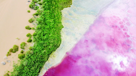 巴丹吉林沙漠中的红海子(2022年7月13日摄,无人机照片)。