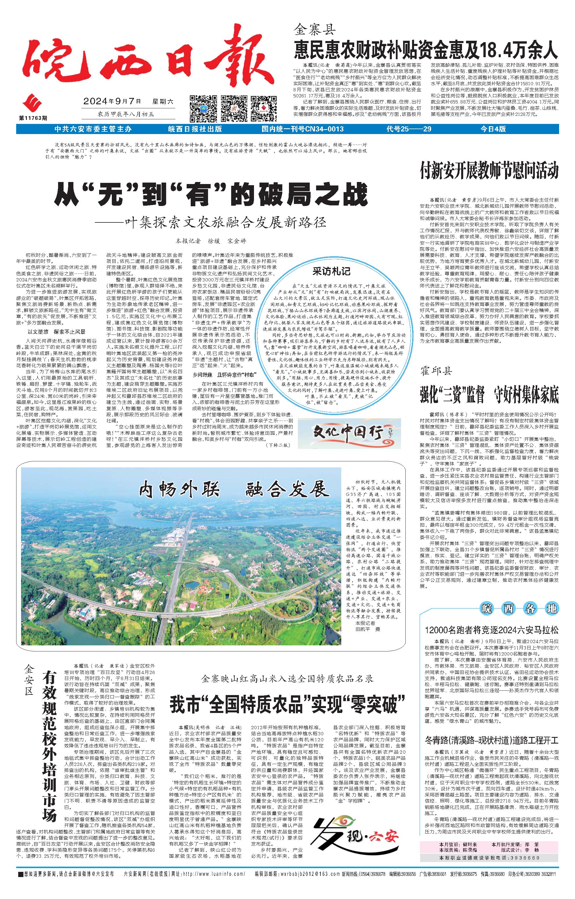 新闻 时间:2024年09月07日 来源:皖西日报