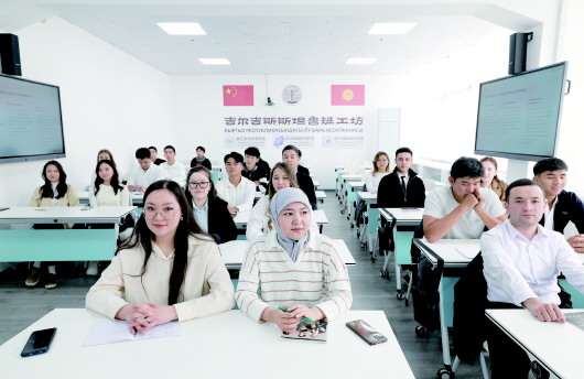 10月26日,学生们在吉尔吉斯斯坦首都比什凯克的鲁班工坊智慧教室内上课。