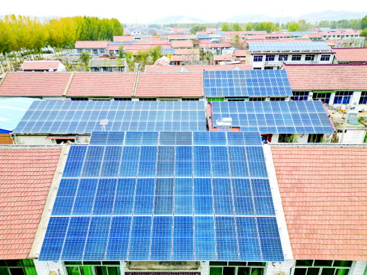 河北省玉田县林头屯乡西芦庄村内的屋顶光伏发电设备(11月12日摄,无人机照片)。 为进一步加快推进农村地区清洁取暖,近年来,河北省玉田县有序推进“光伏+电采暖”工程,安装分布式光伏3.4万余户。进入取暖季后,国网玉田县供电公司的工作人员开始对线路进行巡查检测,检查取暖供电设备,测量暖气温度,确保群众实现清洁温暖过冬。 新华社记者 牟宇 摄