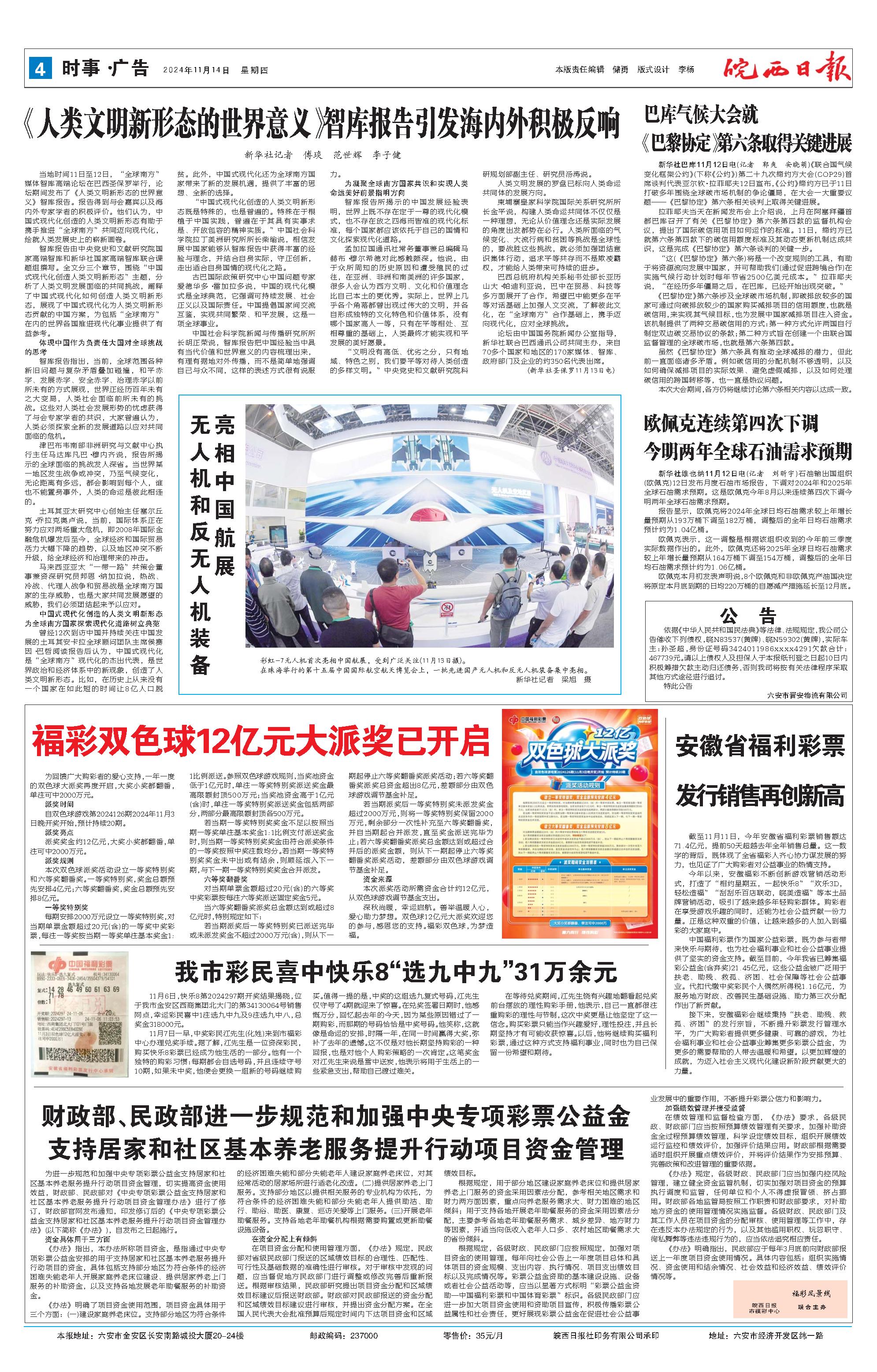 新闻 时间:2024年11月14日 来源:皖西日报