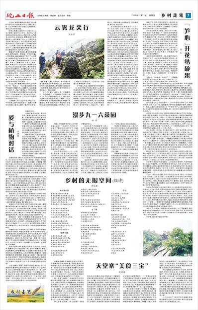 立过秋,难耐的暑热尚未褪尽,但山里的气候已然开始凉爽。听说位于霍山落儿岭、大化坪两镇交界处的挂龙尖风景秀美,便约上好友前往探幽。 挂龙尖距霍山县城约25公里左右,山也不算高,海拔约800多米,信步而上,感觉倒也比较轻松。接近山顶的时候,山风飘来,由远而近,树梢轻摇,霏霏细雨开始洒落到身上。虽然潮湿了衣衫,让人感觉有些不利落,但这种天气,也让我们很幸运地欣赏到难得见一回的美景——开阔的视野中,山峦浅黛,天接云涛,雾色氤氲;游云浮动下,山腰间植被逼眼的青绿与乳白色的云雾遥相映衬,格外舒心养眼。 随着云气的飘忽流动,雾水渐渐湿重起来,细雨也变成一阵连着一阵大的雨滴。大雨的骤至,善意地阻挡了我们下山的脚步,深情地把我们挽留进山顶一座“白云庵”里。在庵内,绵绵细雨纷纷落入四合屋檐下。佛龛之上香雾云绕,厅堂上下清雅、幽静,肃穆庄严之外还充满一种神秘的色彩。传说,白云庵始建于唐代。唐太宗李世民的妹妹云游四方,来到霍山落儿岭和大化坪镇交界地,为此地山势和风景所吸引。公主看到山顶有一形似龙头巨石,又听闻这里曾有龙飞腾,龙须被山峰所挂,名曰“挂龙尖”,便决定在这里建一座“白云庵”,一是为了纪念她的哥哥李世民,二是为祈求国家平安、百姓幸福…… 在“白云庵”歇脚闲聊过程中,当地朋友介绍:“挂龙尖”、“白云庵”这里的环境气候湿润、雨量充沛,土壤肥沃。当地除盛产水稻之外,农副产品和经济作物也比较发达,特别是近些年发展起来的石斛种植和加工产品蜚声海内外,其大美自然风光、历史文化和名胜古迹,已成为远近游客观光休闲的好去处。 山雨稍歇,我们见空而走,移步下山,并来到离山道不远的挂龙尖一条最大的瀑布处观赏。“挂龙尖瀑布”高约百米有余,一叠、再叠、三叠,飞流直泄,溪水欢唱,雨滴水雾与周边布满苔藓的山石、翠绿茂密的竹木、生机勃勃满山野生植物,构造出诗一般的意境,就是造物主无意中用神来之笔挥就的一幅山水画。 穿行于这幅山水画中,有一处景象吸引了我的注意力。只见离瀑布不远的一些大大小小的长满苔藓的山石上,看似无序又有着一定走势与其共生一撮撮、一丛丛低矮有节枝、生机旺盛的绿色草本植物,根健苗壮,煞是可爱。我很好奇这是什么植物?生命力居然如此强盛,光秃秃的大石头上,竟也可以恣意生长。一打听方知:这就是大名鼎鼎的霍山石斛。 关于霍山石斛,浅表的知识我也略知一二:石斛好像分为米斛、铁斛什么的。再深层次的信息,我就不甚了了了。记得,我还在远隔千山万水的大西北看到商店售卖霍山石斛时,曾兴奋自豪过,但真不知道石斛是这样的生长状况。有朋友继续为我解疑释惑:这里的石斛叫龙尖斛,是一家名叫“安徽龙尖斛生物科技有限公司”在此种植经营的。它的创始人徐仁发,出生于药材世家,三十多年的守斛人,历经三代,一直扎根大山,传承非遗古法制斛技艺,坚持真种源、真产地、贴近自然。 龙尖斛的有名主要得益于“三位一体”:天时、地利、人和——天时:龙尖斛生长于北纬31度大别山北麓、霍山石斛核心产地。这里气候条件复杂多变,但山峰林立,雨水充沛,空气潮湿,云雾飘渺;地利:这里的水源流经50万亩生态竹林和岩石,其中,片麻岩质地疏松,养分含量高,有机质丰富,经过数亿年的风化沉淀,为石斛提供了有利的生长基质。龙尖石斛生长于此,吸收山涧雨露,在多样的大气、水、生物雕琢下,“采天地之灵气,汲日月之精华”方被赋予石斛独特的药性特征,成就龙尖斛高贵之品质;人和:他们在定点开辟出来的山上原生态野生种植基地,采用“林下仿野生种植”技术,根据霍山石斛的生长特性,在山林平缓地带开垦出梯田式苗床,铺设当地特有的片麻石,再将石斛苗栽植于石头之上,松为盖,石为床,做到真正的“人种天养”。更为关键的是石斛产品后期加工,龙尖斛人更是一丝不苟用“采收、去杂、分拣、清洗、炒制、去鞘、加箍、烘焙、放胚、去箍、整形、复火”等十八道工序、十二道非遗古法炮制技艺,完成整个加工过程,将完美的石斛产品展现在消费者的面前。 下得挂龙尖山,我们顺道分别走进霍山黑石渡朱家畈村、白莲村500亩龙尖斛育种基地和石斛生产制作车间。在一幢幢宽敞的塑料苗棚、一道道制作工序的见识之下,不仅印证了朋友们的介绍所说不虚,也让我们这些门外汉从内心对龙尖石斛人借用自然优势,发展全业态石斛生产企业,让绿水青山变成金山银山,为乡村振兴做贡献的精神和实际行动产生一份敬佩之意。 风停雨歇,晚霞中微微露出笑脸的夕阳缓缓西下……挂龙尖,给我留下深刻印象的不仅仅是山色空濛雨亦奇风景的美丽……