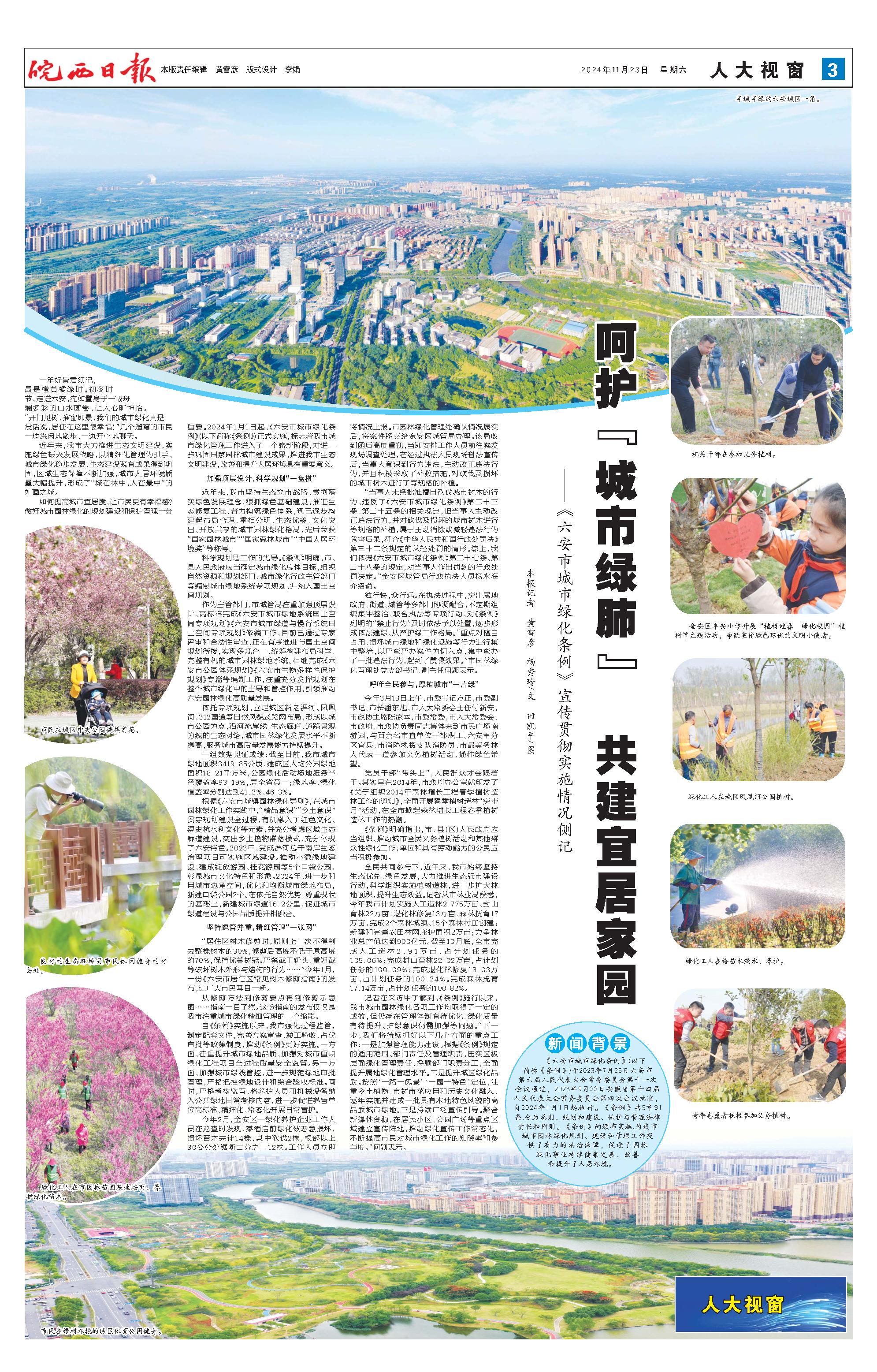 ——《六安市城市绿化条例》宣传贯彻实施情况侧记本报记者 黄雪彦 杨秀玲/文 田凯平/图