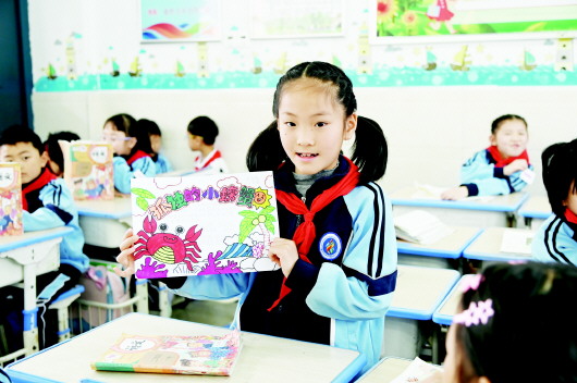 霍邱县城关镇中心小学二8班学生付凌薇在展示她的读写绘本。