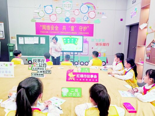 本报讯(记者 毛婧婧 文/图)“每次上网时间不能超过半个小时、不能随便在网上透露个人信息、不点不明链接、遇到问题要找大人……”4月17日下午,“网络安全 共‘童’守护”——三里桥社区儿童议事会上,来自皋城小学14名少先队员代表就如何安全上网各抒己见。 本次活动由六安市公安局、皋城小学、三里桥社区联合举办。来自六安市公安局的警官利用图片、案例向同学们讲解了网络诈骗常见形式、个人信息保护、健康上网习惯等网络安全知识。期间还设置了提问环节,同学们积极踊跃地回答问题,现场气氛十分活跃。 大家围绕网络的利弊、“如何在上网时保护自己”“发现网络不良信息怎么办”等议题,进行分组讨论,在纸上写下想法和建议,每组选派代表进行发言,分享讨论成果,最后形成统一意见。此次活动,旨在提高儿童预防网络骗局的意识和能力,培养孩子正确的网络行为和信息素养。 据悉,三里桥社区儿童议事会是以儿童为主体的民主参与机制,旨在让儿童参与社会治理,保障儿童参与社会事务的权利,让儿童在与成人平等对话的环境中,表达观点、需求和建议,提高儿童的社会责任感,促进儿童全面发展。目前,三里桥社区儿童议事会已经举办6期。