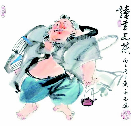 一炉松烟起,半盏江湖落。在凤凰古城的青石巷尾,总有个叼着烟斗的老头儿蹲在墙根边上,一边吧嗒吧嗒地抽着烟,一手捧着个旧搪瓷缸子喝着茶。搪瓷剥落处锈出星图,茶垢积淀里藏着年轮,这便是黄永玉的“茶室”。与其说是品茗,倒像是在饮酒,茶汤当酒,饮的是快意人生。 “茶是水里长出的诗,酒是火中烧出的狂。诗狂本一家,俗人偏要分高下。”黄老呷着陈年普洱,烟斗在晨雾中明灭。他常说茶道该是活物,却被城里人制成了标本:紫砂壶要养出包浆,水温计比老中医的银针还金贵,连倒茶姿势都像在演皮影戏。“陆羽再世,若瞧见这帮‘茶博士',怕是要把《茶经》改作《茶神经》了!”这老茶客的江湖,茶渣比茶叶金贵,茶垢比茶汤醇厚。哪有什么“焚香静心”“三沸九沏”?分明是“渴了喝,困了灌,乐了咂巴嘴”的生存哲学。正如他调侃:“山里人烧茶图个舒坦,城里人摆茶席图个脸面。脸面越光鲜,舌头越麻木。” 看他的茶画最是有趣。《山居煮茶图》里,焦黑的铁壶炖在柴灶上,火苗舔着茶壶,一团烟火气,题跋墨迹淋漓:“茶禅若真一味,何惧沾点锅灰?”《读书品茶》中书生提着一茶壶,眼角眉梢都是窃喜,活脱脱弥勒佛转世。最妙是《牛棚茶话》,粗陶碗里浮着碎茶梗,配着批斗标语当茶点,倒比龙井配虎跑泉的水更显禅机。原来所谓“大雅”,到他这儿便大彻大悟,全成了“大俗即大雅”的行为艺术,茶汤泼在宣纸上,泼出个活色生香的江湖。 某日文人雅集,紫砂壶配金丝楠木茶台,茶人用银匙量着金骏眉,黄老叼着烟斗噗嗤一笑,转头便挥毫泼墨,画个赤脚老农蹲在田埂上,守一茶壶,大碗喝茶,题曰:“三沸不如汗透背,九沏难敌饥肠辘。”满座青衫客面面相觑,不免有点尴尬。 普洱是他的所爱,但他却最讨厌“千年古树”的噱头。他说:“茶树活千年是造化,人活百年是修行。拿年岁唬人的茶,不如街边大碗茶实在。”他存茶也奇,陈年普洱与咸鱼腊肉同柜,说“茶气要沾点烟火才养得活”。有回拍卖行给他送来“老班章”普洱,他竟掰碎掺进酸辣粉,笑称“给阳春白雪加点下里巴人试试”。酸辣鲜香里浮沉着天价茶末,倒比贡茶院的龙凤团茶更显真味。 有人不相信黄老平时的粗茶淡饭,问之:“粗茶岂能悟道?”老头儿白眼一瞪:“六零年我在牛棚,半碗馊茶能暖三天魂。您要的‘道’,早被那年月的西北风刮跑喽。”话音落处,烟斗灰落入茶汤,惊起一江春水。吊脚楼的倒影在搪瓷缸里晃荡,茶缸口处粘着片残茶,像极了他画里永不沉没的月亮。 黄永玉先生认为喝茶不必过于讲究,随意即可。他在短文《野茶客》中写道:“山里人饮茶不讲究,用具随意,烧出就是上好的茶;城里人饮茶,什么都要讲究,其实什么也不懂。”这段文字虽短,却一针见血,透露出他对茶文化的独道见解。而今先生驾鹤西去,世间少了一个有趣的老头儿和那一抹茶香,唯余茶缸沿茶垢倔强地记着:那些年烟斗明灭处,柴火味混着茶香,熏透了半个世纪的浮沉。
