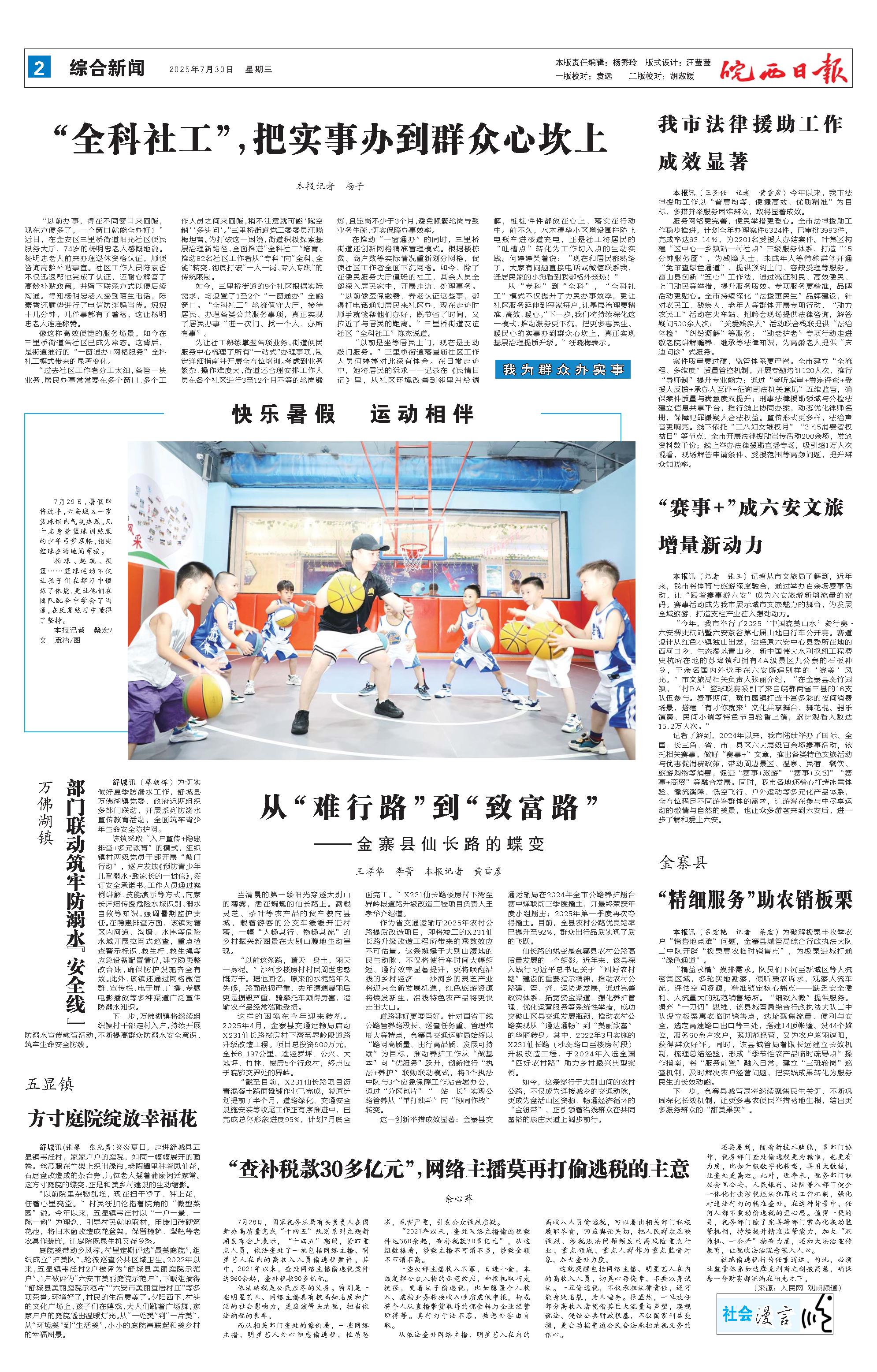 新闻 时间:2025年07月30日 来源:皖西日报