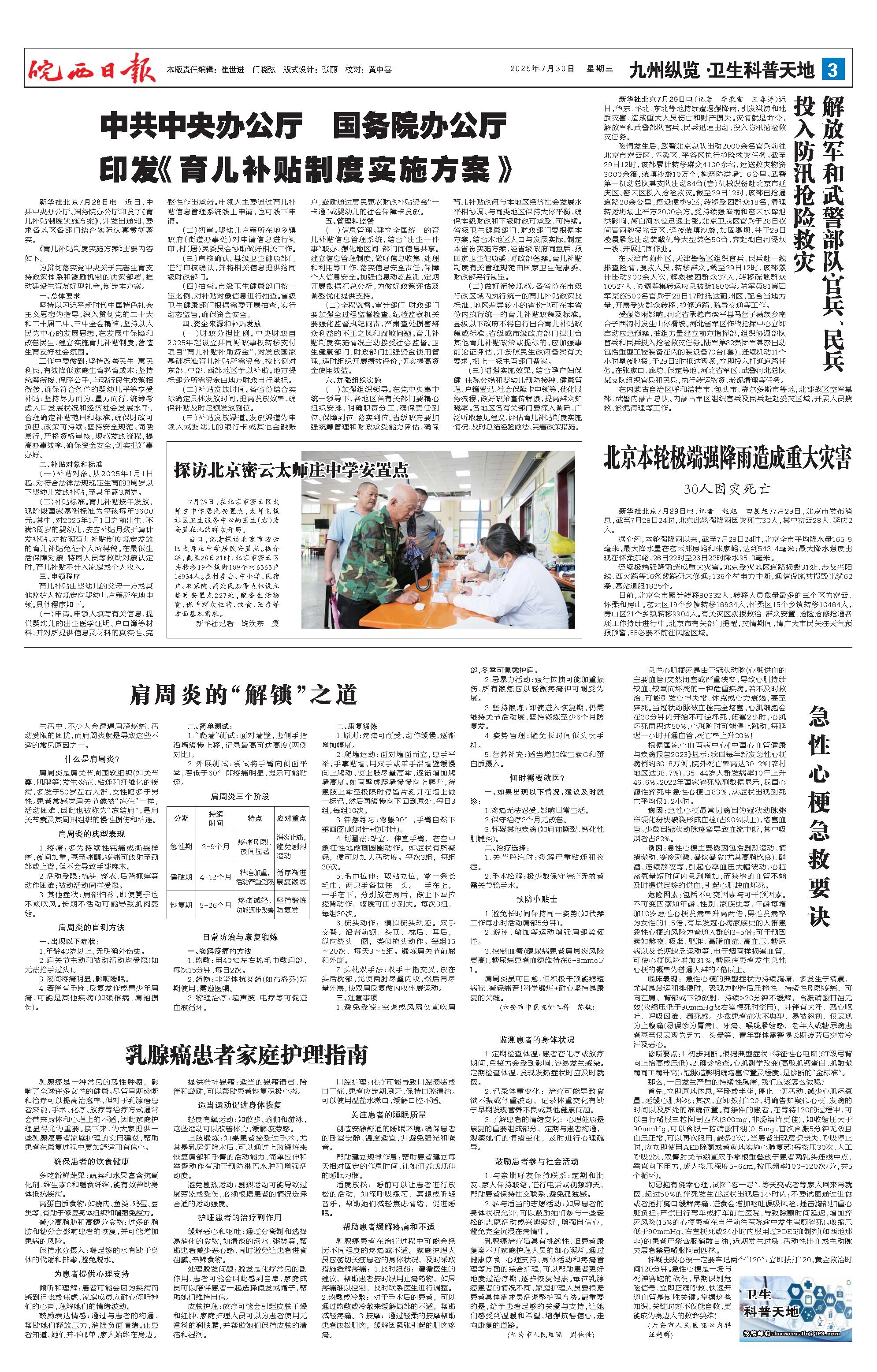 生活中,不少人会遭遇肩膀疼痛、活动受限的困扰,而肩周炎就是导致这些不适的常见原因之一。 什么是肩周炎? 肩周炎是肩关节周围软组织(如关节囊、肌腱等)发生炎症、粘连和纤维化的疾病,多发于50岁左右人群,女性略多于男性。患者常感觉肩关节像被“冻住”一样,活动困难,因此也被称为“冻结肩”,是肩关节囊及其周围组织的慢性损伤和粘连。 肩周炎的典型表现 1.疼痛:多为持续性钝痛或撕裂样痛,夜间加重,甚至痛醒。疼痛可放射至颈部或上臂,但不会导致手部麻木。 2.活动受限:梳头、穿衣、后背抓痒等动作困难;被动活动同样受限。 3.其他症状:肩部怕冷,即使夏季也不敢吹风。长期不活动可能导致肌肉萎缩。 肩周炎的自测方法 一、出现以下症状: 1.年龄40岁以上,无明确外伤史。 2.肩关节主动和被动活动均受限(如无法抬手过头)。 3.夜间疼痛明显,影响睡眠。 4.若伴有手麻、反复发作或青少年肩痛,可能是其他疾病(如颈椎病、肩袖损伤)。 二、简单测试: 1.“爬墙”测试:面对墙壁,患侧手指沿墙缓慢上移,记录最高可达高度(两侧对比)。 2.外展测试:尝试将手臂向侧面平举,若低于60°即疼痛明显,提示可能粘连。 肩周炎三个阶段 日常防治与康复锻炼 一、缓解疼痛的方法 1.热敷:用40℃左右热毛巾敷肩部,每次15分钟,每日2次。 2.药物:非甾体抗炎药(如布洛芬)短期使用,需遵医嘱。 3.物理治疗:超声波、电疗等可促进血液循环。 二、康复锻炼 1.原则:疼痛可耐受,动作缓慢,逐渐增加幅度。 2.爬墙运动:面对墙面而立,患手平举,手掌贴墙,用双手或单手沿墙壁缓慢向上爬动,使上肢尽量高举,逐渐增加爬墙高度。如同壁虎爬墙慢慢向上爬升,待患肢上举至极限时停留片刻并在墙上做一标记,然后再缓慢向下回到原处,每日3组,每组10次。 3.钟摆练习:弯腰90°,手臂自然下垂画圈(顺时针+逆时针)。 4.划圈法:站立,伸直手臂,在空中象征性地做画圆圈动作。如症状有所减轻,便可以加大活动度。每次3组,每组30次。 5.毛巾拉伸:取站立位,拿一条长毛巾,两只手各拉住一头。一手在上,一手在下,分别放在身后,做上下牵拉搓背动作,幅度可由小到大。每次3组,每组30次。 6.梳头动作:模拟梳头轨迹。双手交替,沿着前额、头顶、枕后、耳后,纵向绕头一圈,类似梳头动作。每组15~20次,每天3~5组。锻炼肩关节前屈和外旋。 7.头枕双手法:双手十指交叉,放在头后枕部,先使两肘尽量内收,然后再尽量外展,使双肩反复做内收外展运动。 三、注意事项 1.避免受凉:空调或风扇勿直吹肩部,冬季可佩戴护肩。 2.忌暴力活动:强行拉拽可能加重损伤,所有锻炼应以轻微疼痛但可耐受为度。 3.坚持锻炼:即使进入恢复期,仍需维持关节活动度,坚持锻炼至少6个月防复发。 4.姿势管理:避免长时间低头玩手机。 5.营养补充:适当增加维生素C和蛋白质摄入。 何时需要就医? 一、如果出现以下情况,建议及时就诊: 1.疼痛无法忍受,影响日常生活。 2.保守治疗3个月无改善。 3.怀疑其他疾病(如肩袖撕裂、钙化性肌腱炎)。 二、治疗选择: 1.关节腔注射:缓解严重粘连和炎症。 2.手术松解:极少数保守治疗无效者需关节镜手术。 预防小贴士 1.避免长时间保持同一姿势(如伏案工作每小时活动肩部5分钟)。 2.游泳、瑜伽等运动增强肩部柔韧性。 3.控制血糖(糖尿病患者肩周炎风险更高),糖尿病患者血糖维持在6-8mmol/L。 肩周炎虽可自愈,但积极干预能缩短病程、减轻痛苦!科学锻炼+耐心坚持是康复的关键。 (六安市中医院骨三科 陈敏) 分期 持续时间 特点 应对重点 急性期 2-9个月 疼痛剧烈,夜间显著 消炎止痛,避免剧烈运动 僵硬期 4-12个月 粘连加重,活动严重受限 循序渐进康复锻炼 恢复期 5-26个月 疼痛减轻,功能逐步改善 坚持锻炼防复发
