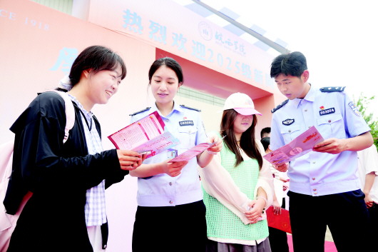 9月6日,皖西学院大一新生报到首日,六安市公安局裕安分局组织民警提前到岗,维持现场秩序,保障学生平安入学。同时,民警们走到新生身边,向大家讲解如何防范电信诈骗、远离跨境赌博,以及维护国家安全等方面的法律知识,引导大家做尊法、懂法、守法的新时代合格大学生。