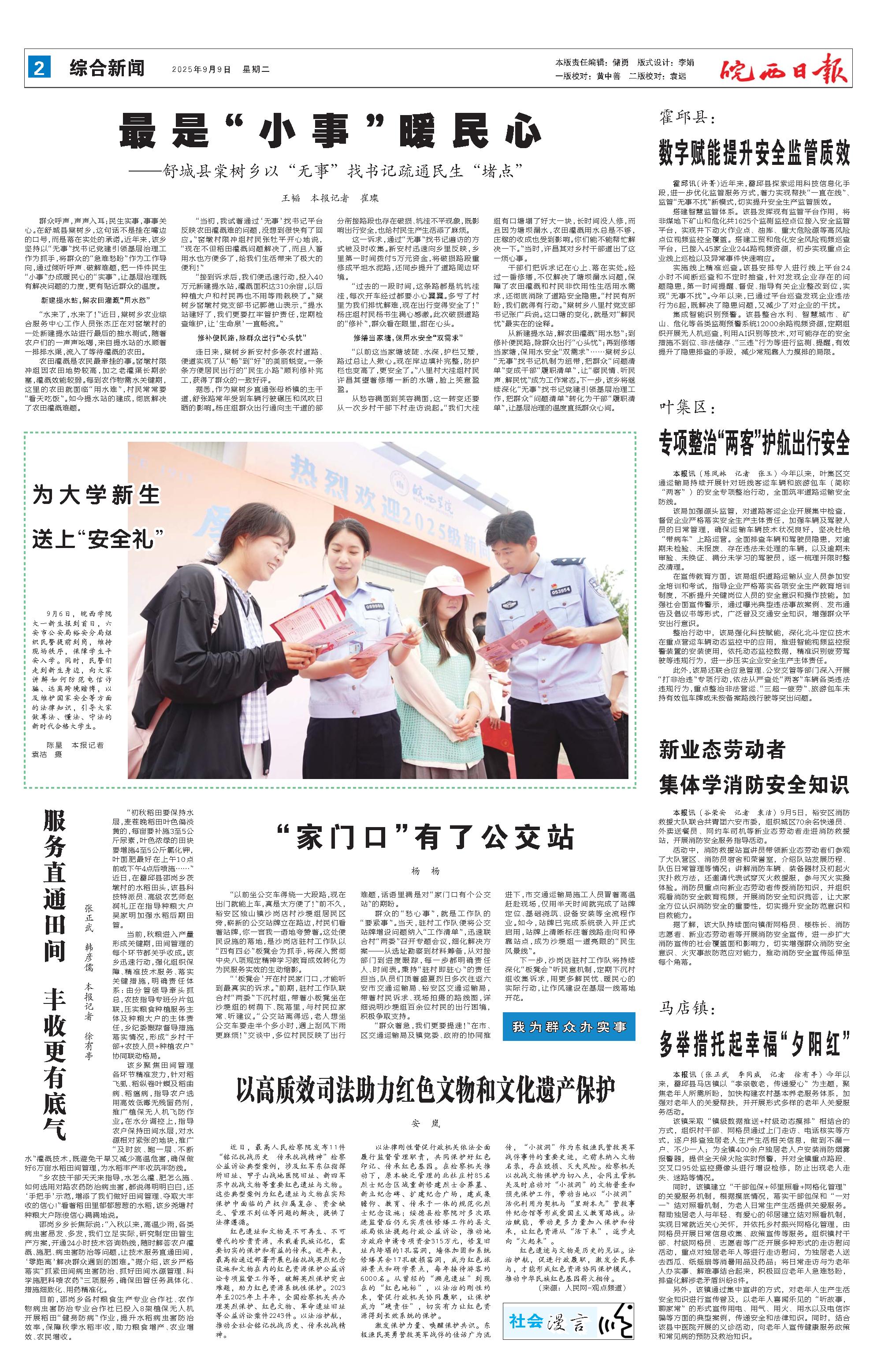 “初秋稻田要保持水层,麦茬晚稻田叶色偏淡黄的,每亩要补施3至5公斤尿素,叶色浓绿的田块要增施4至5公斤氯化钾,叶面肥最好在上午10点前或下午4点后喷施……”近日,在霍邱县邵岗乡茨墩村的水稻田头,该县科技特派员、高级农艺师赵润礼正在指导种粮大户吴家明加强水稻后期田管。 当前,秋粮进入产量形成关键期,田间管理的每个环节都关乎收成。该乡迅速行动,强化组织保障、精准技术服务、落实关键措施,明确责任体系:由分管领导牵头抓总,农技指导专班分片包联,压实粮食种植服务主体及种粮大户的主体责任,乡纪委跟踪督导措施落实情况,形成“乡村干部+农技人员+种植农户”协同联动格局。 该乡聚焦田间管理各环节精准发力,针对稻飞虱、稻纵卷叶螟及稻曲病、稻瘟病,指导农户选用高效低毒无残留药剂,推广植保无人机飞防作业。在水分调控上,指导农户保持田间水层,对水源相对紧张的地块,推广“及时放、跑一层、不断水”灌溉技术,既避免干旱又减少高温危害,确保做好6万亩水稻田间管理,为水稻丰产丰收筑牢防线。 “乡农技干部天天来指导,水怎么灌、肥怎么施、如何选用对路农药防治病虫害,都说得明明白白,还‘手把手’示范,增添了我们做好田间管理、夺取大丰收的信心!”看着稻田里郁郁葱葱的水稻,该乡尧塘村种粮大户陈俊信心满满地说。 邵岗乡乡长焦际说:“入秋以来,高温少雨,各类病虫害易发、多发,我们立足实际,研究制定田管生产方案,开通24小时技术咨询热线,随时解答农户灌溉、施肥、病虫害防治等问题,让技术服务直通田间,‘零距离’解决群众遇到的困难。”据介绍,该乡严格落实“抓紧田间病虫害防治、抓好田间水源管理、科学施肥料喷农药”三项服务,确保田管任务具体化、措施细致化、用药精准化。 目前,邵岗乡各村粮食生产专业合作社、农作物病虫害防治专业合作社已投入8架植保无人机开展稻田“健身防病”作业,提升水稻病虫害防治效率,保障秋季水稻丰收,助力粮食增产、农业增效、农民增收。
