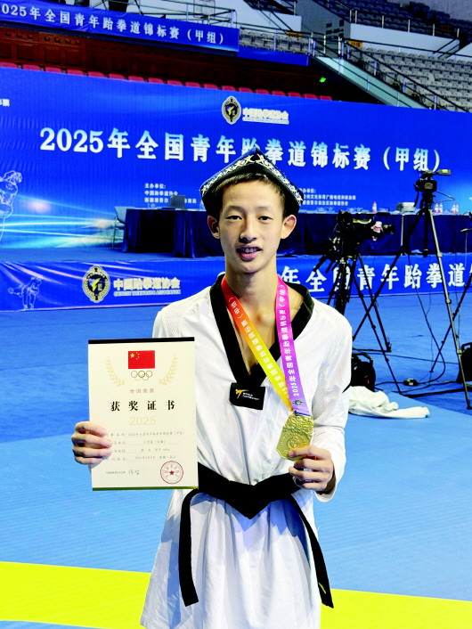 9月4日,新疆昌吉市体育馆内人声鼎沸,全国青年跆拳道锦标赛(甲组)男子48公斤级决赛正进行至白热化阶段。比分紧咬,时间所剩无几,所有观众都屏息凝神——就在这时,身穿印着“六安”字样队服的王思晨突然一记干净利落的“后旋踢”,精准击中对手头部,锁定胜局,为安徽队斩获一枚金牌。 这是这位来自六安市体育运动学校、年仅17岁的小将继2023年获得安徽省冠军、2024年市运会冠军后,在全国赛场实现的重大突破,同时,凭借此战,王思晨荣获“国家级运动健将”称号。 本次赛事汇聚了全国28支代表队400余名选手,王思晨的夺冠之路并非一帆风顺。预赛阶段,他仅以第三名的成绩惊险晋级总决赛,教练邱波坦言:“赛前预估是第二、三名的水平,能拿冠军确实意外,但这是他后期系统集训拼出来的结果。” 决赛时,王思晨面对的是曾击败自己、比自己高近10厘米的对手。“他重心高,我就靠灵活打进去。”王思晨回忆,为攻克这个“老对手”,他和教练做了很多针对性训练,反复复盘比赛细节。比赛中,他沉着应对胶着局面,不断观察、试探,终于抓住对方防守转瞬即逝的漏洞,用一记精准的后旋踢打破僵局。“出腿的时候特别自信,因为练了无数次,就等这个机会。”王思晨说。 荣耀的背后,是近乎苛刻的自我管理与日复一日的艰苦训练。王思晨有一套雷打不动的“冠军作息”:早晨七点起床吃早餐,上午九点至十一点半、下午三点至六点进行高强度专项训练,其余时间要么严格控制体重,要么进行康复放松。“最大的难题是降体重。要在高强度训练中守住48公斤的界限,还要保持竞技状态,真的非常难。”他说,有时练到体力透支,歇一晚第二天仍要准时站在训练场,“但想到付出才有回报,就不想放弃。” (下转三版) (上接一版) 竞技路上从无坦途。2023年夺得省冠军后,王思晨曾因伤病停训近两个月,复出后旧伤再度复发。“受伤的时候确实很难受,但因为热爱,我从没想过放弃。”王思晨话语朴素,却透出坚毅。正是这份执着,让他在本次赛事中实现“复仇”,也让教练邱波感慨:“从2021年在舒城龙舒武校发现他,就觉得这孩子机灵、身体素质好,现在看来,他的坚持比天赋更难得。” 王思晨的脱颖而出,也并非个例。六安市体育运动学校副校长朱同洲介绍,该校自建校以来,始终坚持“育人为本、德育为先”,推进体教融合深度发展。目前学校共设7个“三集中”项目队,在校训练运动员368人。仅2024年,该校运动员斩获省青少年锦标赛53个第一名、省冠军赛15个第一名,22人通过体育单招升入本科院校,本科录取率超60%。 如今,王思晨已瞄准下一个目标:升级别至51公斤级,迎战四年一届的省运会。与此同时,作为一名“国家级运动健将”,他也有了清晰的学业规划——通过体育单招考入北京体育大学,继续跆拳道之路。“站上领奖台的那一刻,觉得所有的付出都值了。”王思晨说,“未来,我还想往更高的地方走。”