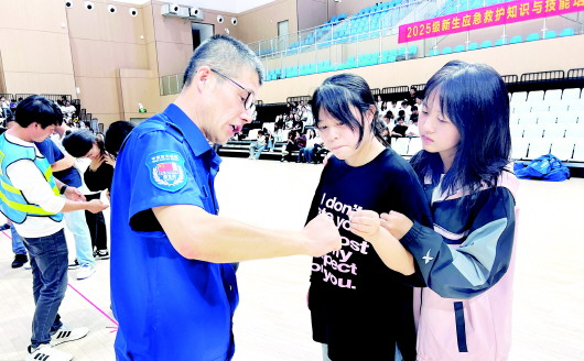 为增强大学生安全防范意识,提升应对突发事件的自我保护与互助救援能力,近日,六安职业技术学院邀请六安市蓝天救援队,为2025级新生开展应急救护技能培训。