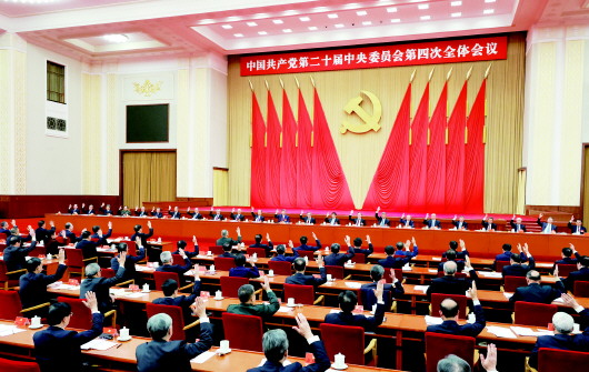 中共二十届四中全会在京举行 中央政治局主持全会 中央委员会总书记习近平作重要讲话