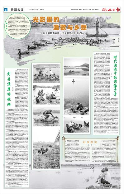 历时五载深耕,一帧帧黑白影像定格岁月长歌。六安摄影师王峰的《关关雎鸠》出版月余,书名取自《诗经》,雎鸠即善捕鱼的渔鹰。画册以淠河渔鹰捕鱼为魂,用质朴镜头记录张孝周兄弟与渔鹰的共生日常,为消逝的传统生计留存珍贵视觉档案。 没有斑斓色彩,唯有墨色层次晕染乡愁;不见刻意煽情,却以“端庄老实”的影像力量,叩击现代人对故乡与传统的柔软心弦。宋刚明、许国、姜纬三位摄影名家倾力指导,148幅作品凝结的不仅是技艺,更是对乡土的深情与文化传承的担当。 本期特别关注,我们特邀画册序言、创作手记与深度评论,带您循着光影,重温淠河岸边的渔歌与坚守,感受摄影为时代留痕的初心。