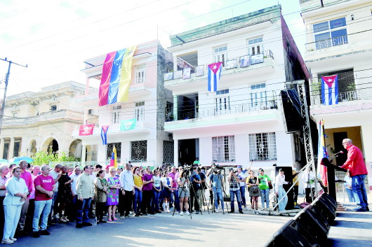 古巴各界民众近千人6日在首都哈瓦那举行集会,谴责美国针对委内瑞拉的军事威胁与制裁封锁,并重申对委内瑞拉政府的支持。