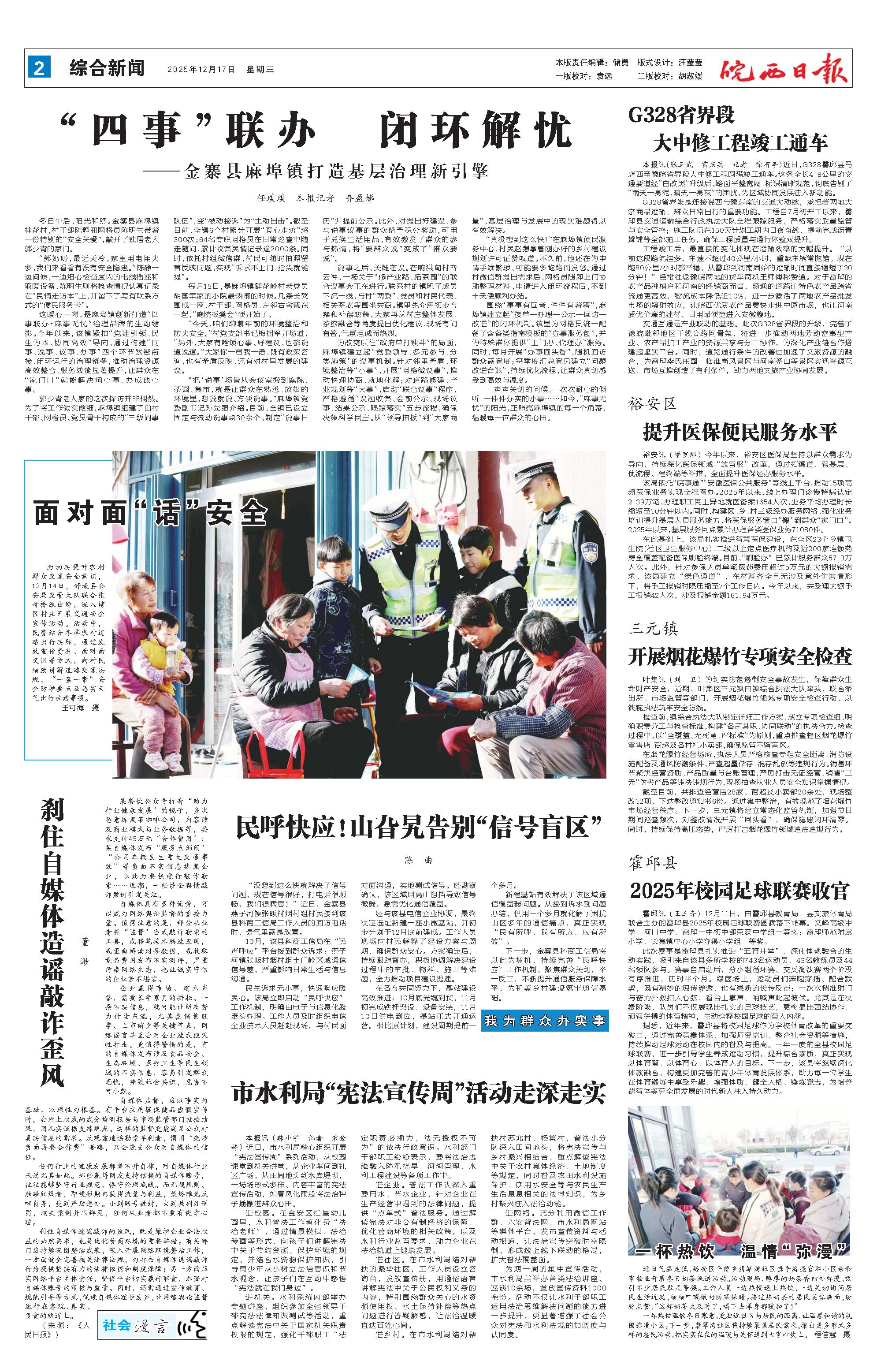 新闻 时间:2025年12月17日 来源:皖西日报