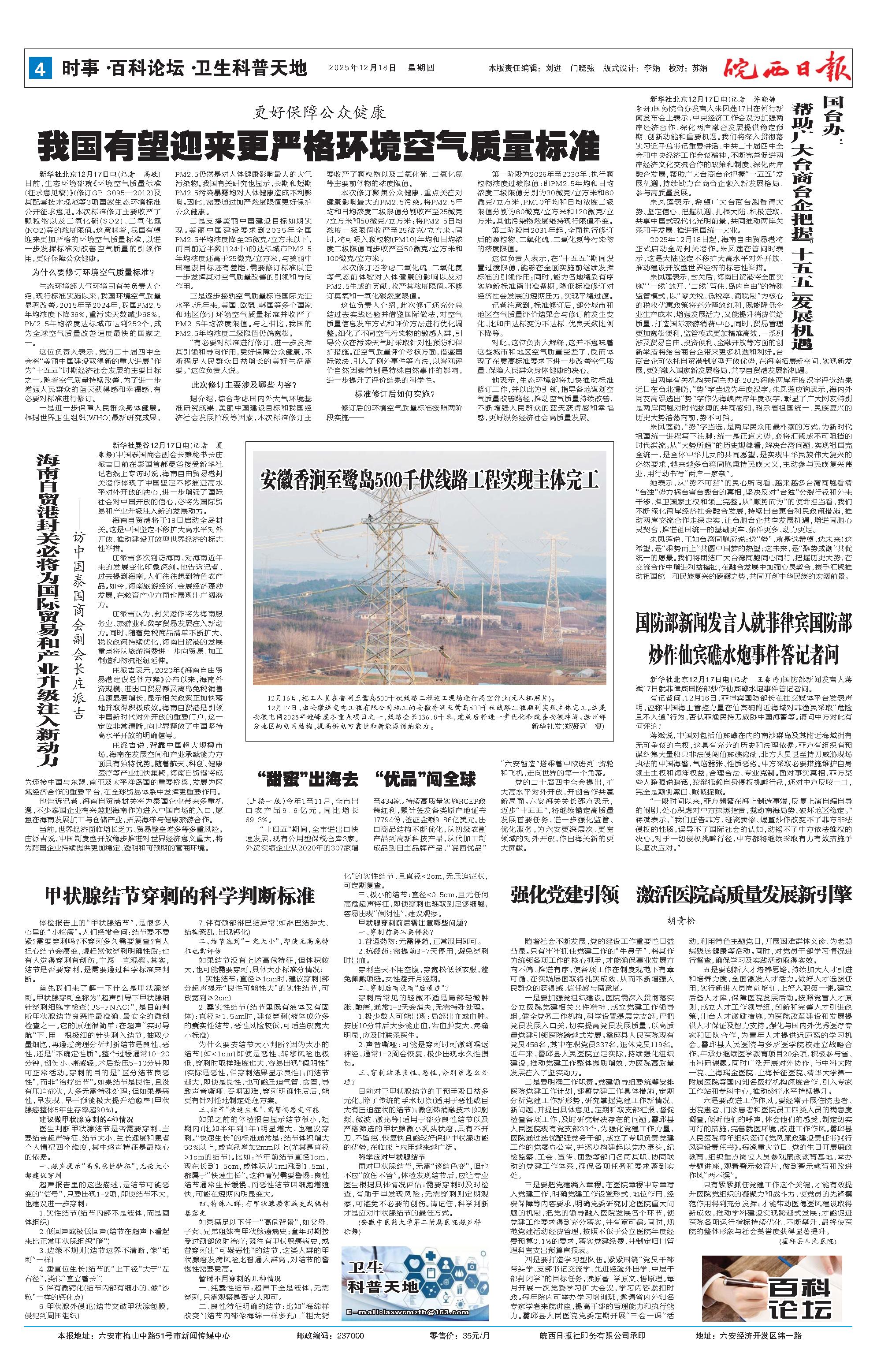 新闻 时间:2025年12月18日 来源:皖西日报
