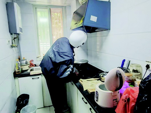 “小巷骑兵”志愿者在孤寡老人家里检查用电安全。