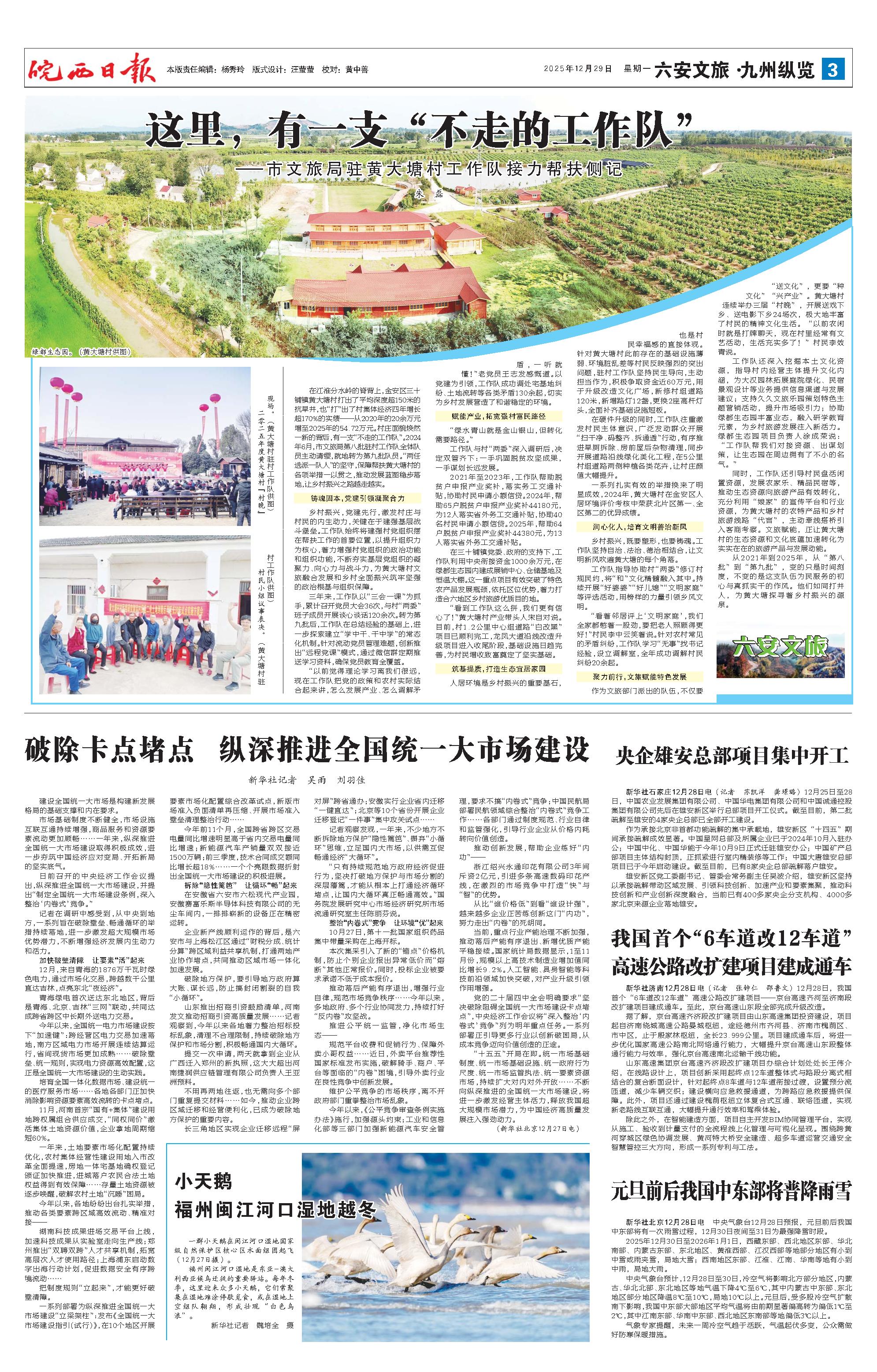 新闻 时间:2025年12月29日 来源:皖西日报