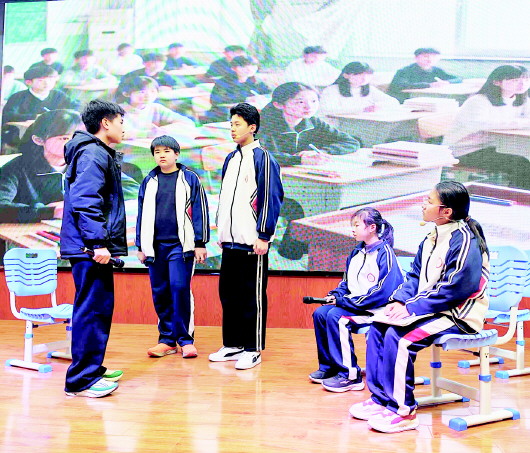 1月15日下午,六安皋城中学“心”沐阳光 “剧”焦成长——第三届校园情景剧大赛举行。近百名七年级学生参演的8个节目,从不同角度反映了孩子们注重心理健康、防止校园霸凌、同学间相互关爱的动人情节。表演声情并茂,赢得了现场观众的热烈掌声。市关工委负责同志观看了整场演出,并给予肯定。 周钢 文/图
