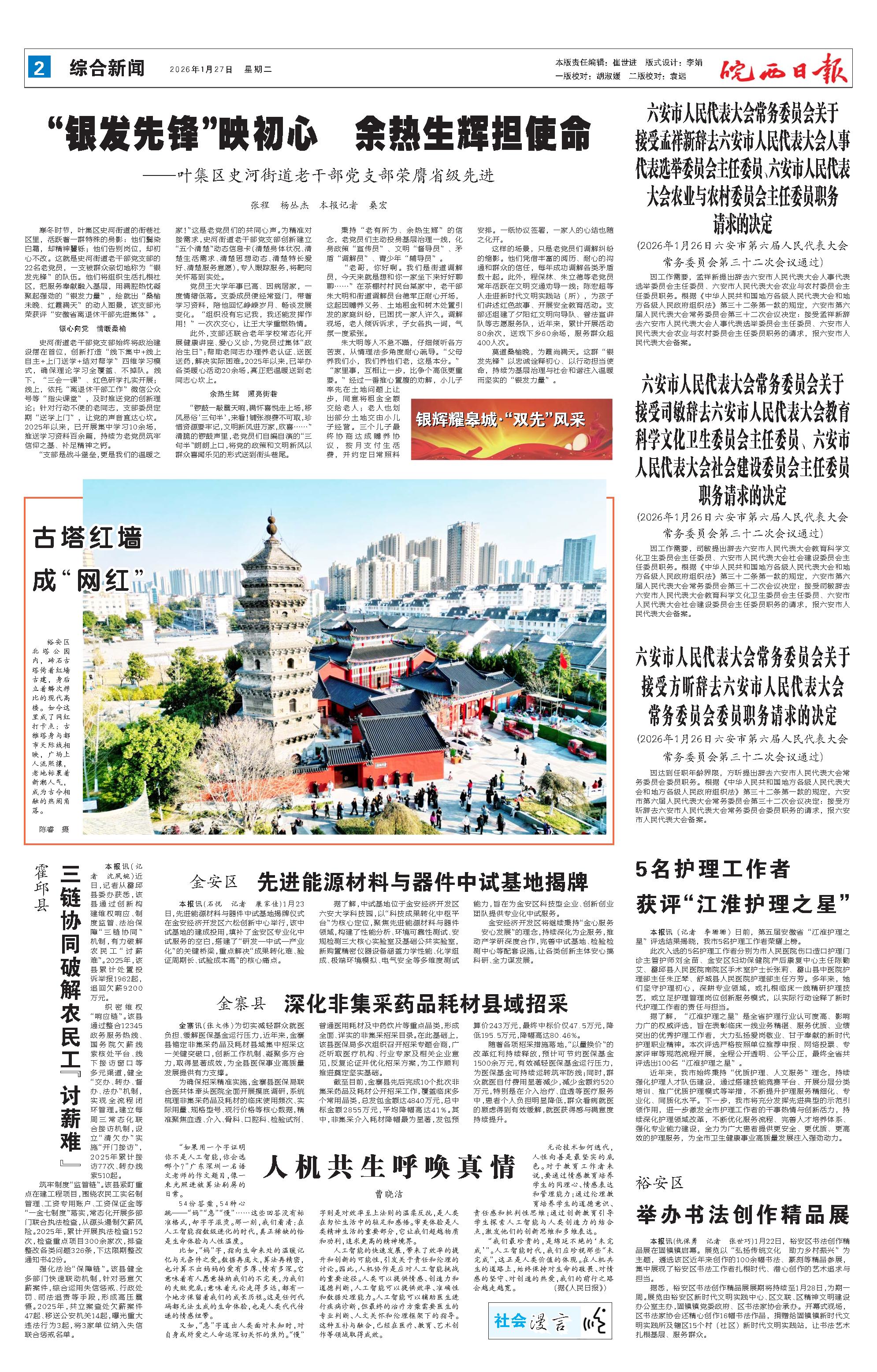新闻 时间:2026年01月27日 来源:皖西日报