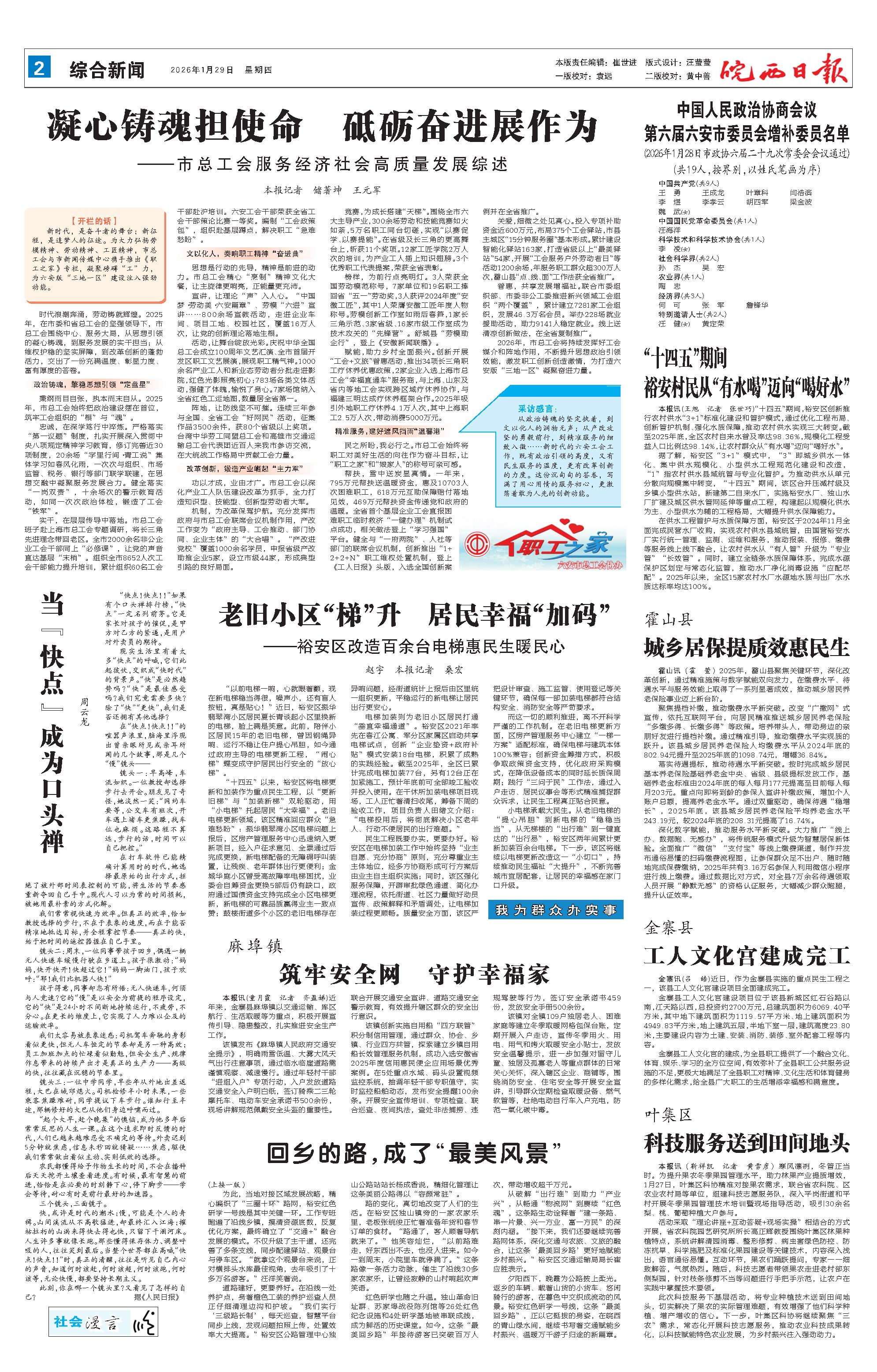 新闻 时间:2026年01月29日 来源:皖西日报