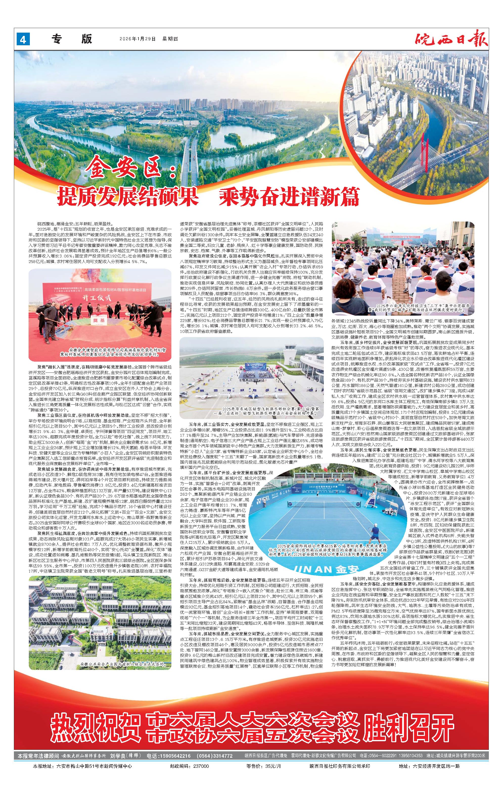 皖西腹地,潮涌金安;五年耕耘,硕果盈枝。 2025年,是“十四五”规划的收官之年,也是金安区承压奋进、克难求成的一年。面对急剧变化的发展环境和严峻复杂的风险挑战,金安区上下在市委、市政府和区委的坚强领导下,坚持以习近平新时代中国特色社会主义思想为指导,深入学习贯彻习近平总书记考察安徽重要讲话精神,勠力同心攻坚克难,矢志不渝改革创新,经济社会发展取得显著成效。预计全年地区生产总值增长6%;一般公共预算收入增长3.06%;固定资产投资完成192亿元;社会消费品零售总额达258亿元;城镇、农村常住居民人均可支配收入分别增长4.5%、7%。 聚焦“融长入圈”活跃度,在精研细磨中拓宽发展路径。全国首个跨市省级经济开发区——安徽合肥瑶海经济开发区获批,金安分园片区总体规划编制完成,蓝溪路等项目全面启动。全速推进合肥都市圈要素市场化配置综合改革试点,制定区级改革举措43条,明确标志性改革事项10件。全年引进配套合肥产业项目29个,总投资70亿元。纵深推进对口合作,成立金安区在外人才协会上海分会,金安经济开发区加入长三角G60科创走廊产业园区联盟、低空经济协同创新联盟。全国率先建立跨省域“财税分成、统计指标分算”利益共享机制,入选全省深入推进长三角更高质量一体化发展标志性成果。与松江区达成“云窗”合作,实现“跨省通办”事项36个。 聚焦工业强区首位度,在抢抓机遇中释放发展动能。坚定不移“招大引强”,举办专场投资环境说明会7场,以商招商、基金招商、产业招商齐头并进,全年新招引亿元以上项目50个,其中5亿元以上项目5个。预计工业投资、技改投资分别增长21.9%、41.3%,金申健、卓英社、宇州弹簧等项目“四证同发”,项目开、竣工率达100%,超额完成年度投资计划。全力以赴“培优壮强”,线上线下共同发力,助企招工5000余人;创新“每周‘金’约”机制,解决企业融资需求56.8亿元,新增规上工业企业26家,预计规上工业增加值增长12%,明天氢能、格恩半导体、环友科技、安健天窗等企业认定为专精特新“小巨人”企业。金安区羽绒纺织服装特色产业集聚区入选工信部重点培育名单。金安经济开发区获评省级“先进制造业和现代服务业深度融合发展标杆单位”,全市唯一。 聚焦城乡发展融合度,在协调共进中提升发展能级。有序推进城市更新,完成老旧小区改造3个、解危D级危房383套,既有住宅加装电梯47台。全面推进海绵城市建设,苏大堰片区、淠河沿岸等4个片区项目顺利启动。持续发力提振消费,拉动汽车、家电数码、零售餐饮消费13.8亿元。投资3.4亿元新建高标准农田12万亩,占全市42%,粮食种植面积达132万亩,年产量53万吨。建设育秧中心13家,新认证绿色食品30个、有机农产品20个,29.6万亩水稻基地获批全国绿色食品原料标准化生产基地。新建、改扩建规模养殖场12家,皖西白鹅饲养量达328万羽。学习运用“千万工程”经验,完成7个精品示范村、16个省级中心村建设任务,创建美丽宜居自然村庄212个。深化拓展“文旅+百业”“百业+文旅”,金安文旅投公司实体化运营,开发龙潭河水库水上运动中心、南山草原·森野集等新业态。2025金安国际网球公开赛吸引全球60个国家、地区近3000名运动员参赛,带动观众和游客数十万人次。 聚焦民生福祉满意度,在共治共享中提升发展成色。持续巩固拓展脱贫攻坚成果,动态消除风险监测对象103户。超额完成27大项49小项民生实事,新增城镇就业8700余人,提供社会救助1.7万人次。优化调整教育资源布局,撤并小规模学校12所,新增学前教育托位480个,实现“安心托幼”全覆盖。深化“双体”建设,成功处置诺如病毒、基孔肯雅热等突发疫情9起,马头镇卫生院新院区、南山新区社区卫生服务中心开诊,市第四人民医院获批三级综合医院。全区医保参保率达99.55%,全市第一。投资1100万元改造提升乡镇敬老院10所、农村幸福院17所,中店镇卫生院荣获全国“敬老文明号”称号。扎实推进基层治理,三里桥街道荣获“安徽省基层治理先进集体”称号,茶棚社区获评“全国文明单位”,人民路小学获评“全国文明校园”。妥善处理蓝城、丹凤朝阳等历史遗留问题12个,及时调处欠薪纠纷1300余件。筑牢本土安全屏障,全覆盖建立应急救援队伍24支240人,安装道路交通“平安卫士”70个,“平安医院智慧安防”模型荣获公安部建模比赛全国二等奖。妇女儿童、老龄、残疾人、红十字等事业健康发展,国防动员、民族宗教、史志、档案、气象、外事等工作取得新进步。 聚焦政府建设公信度,在固本强基中强化作风担当。扎实开展深入贯彻中央八项规定精神学习教育,持续整治形式主义为基层减负,全年督检考事项同比压减67%,印发文件同比减少15%;认真开展“访企入村”专项行动,办结诉求659件。法治政府建设不断强化,行政机关负责人出庭应诉率继续保持100%,充分发挥行政复议化解行政争议主渠道作用,进一步健全完善“府院、府检”联动机制,推动实现信息共享、风险联控、协同处置。认真办理人大代表建议和政协委员提案209件,办结网民留言、市长热线6.6万余件。进一步优化政务服务综合窗口事项赋权及人员配备,综窗事项当日办结率96.3%,群众满意度98%。 “十四五”已经胜利收官,这五年,经历的风雨洗礼前所未有,走过的奋斗征程非比寻常,收获的发展硕果超出预期,在