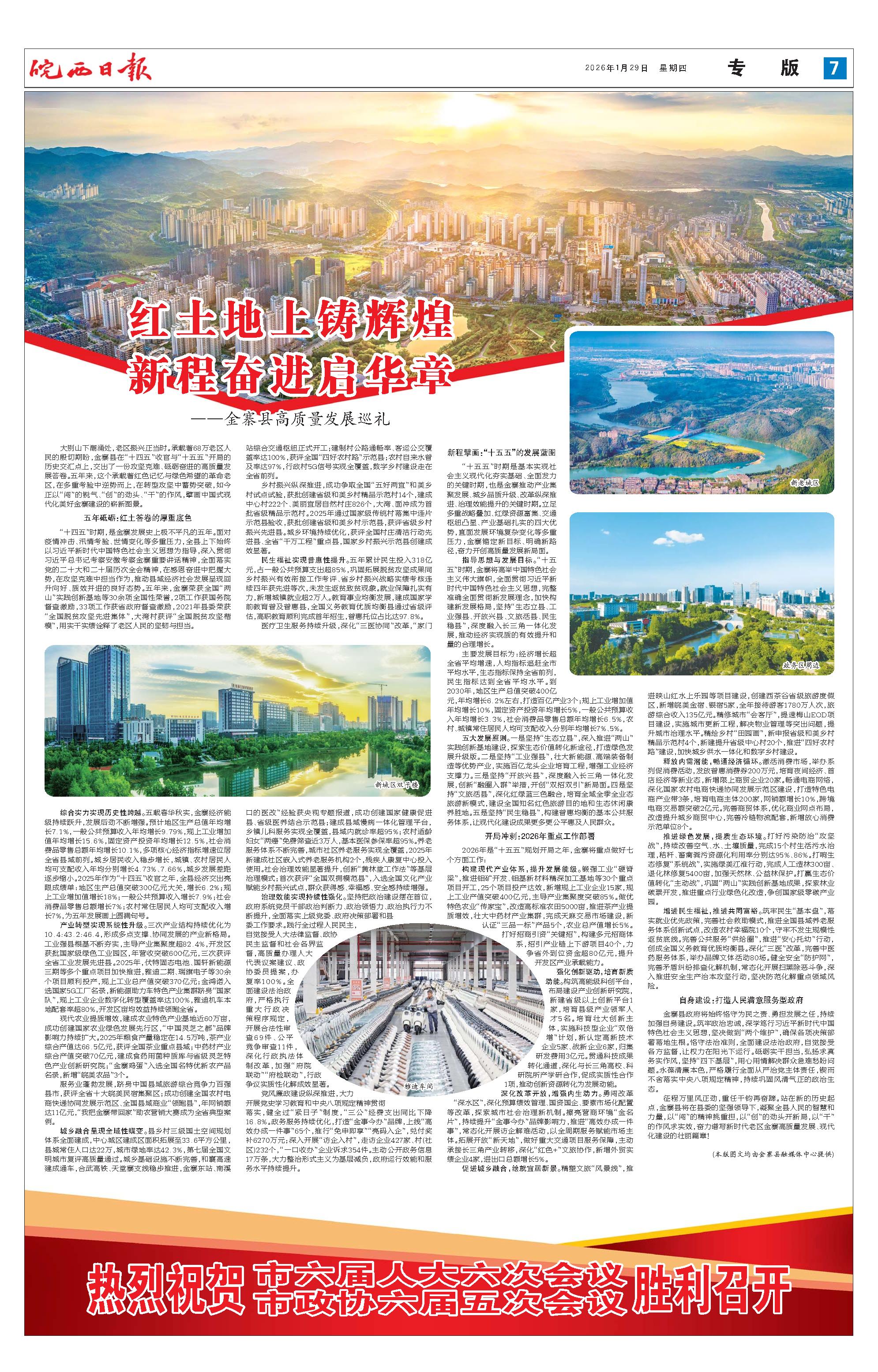 大别山下潮涌处,老区振兴正当时。承载着68万老区人民的殷切期盼,金寨县在“十四五”收官与“十五五”开局的历史交汇点上,交出了一份攻坚克难、砥砺奋进的高质量发展答卷。五年来,这个承载着红色记忆与绿色希望的革命老区,在多重考验中逆势而上,在转型攻坚中蓄势突破,如今正以“闯”的锐气、“创”的劲头、“干”的作风,擘画中国式现代化美好金寨建设的崭新图景。 五年砥砺:红土答卷的厚重底色 “十四五”时期,是金寨发展史上极不平凡的五年。面对疫情冲击、汛情考验、世情变化等多重压力,全县上下始终以习近平新时代中国特色社会主义思想为指导,深入贯彻习近平总书记考察安徽考察金寨重要讲话精神,全面落实党的二十大和二十届历次全会精神,在感恩奋进中把握大势,在攻坚克难中担当作为,推动县域经济社会发展呈现回升向好、质效并进的良好态势。五年来,金寨荣获全国“两山”实践创新基地等30余项全国性荣誉,2项工作获国务院督查激励,33项工作获省政府督查激励,2021年县委荣获“全国脱贫攻坚先进集体”,大湾村获评“全国脱贫攻坚楷模”,用实干实绩诠释了老区人民的坚韧与担当。 综合实力实现历史性跨越。五载春华秋实,金寨经济能级持续跃升,发展后劲不断增强。预计地区生产总值年均增长7.1%,一般公共预算收入年均增长9.79%,规上工业增加值年均增长15.6%,固定资产投资年均增长12.5%,社会消费品零售总额年均增长10.1%,多项核心经济指标增速位居全省县域前列。城乡居民收入稳步增长,城镇、农村居民人均可支配收入年均分别增长4.73%、7.66%,城乡发展差距逐步缩小。2025年作为“十四五”收官之年,全县经济交出亮眼成绩单:地区生产总值突破300亿元大关,增长6.2%;规上工业增加值增长18%;一般公共预算收入增长7.9%;社会消费品零售总额增长7%;农村常住居民人均可支配收入增长7%,为五年发展画上圆满句号。 产业转型实现系统性升级。三次产业结构持续优化为10.4:43.2:46.4,形成多点支撑、协同发展的产业新格局。工业强县根基不断夯实,主导产业集聚度超82.4%,开发区获批国家级绿色工业园区,年营收突破600亿元,三次获评全省工业发展先进县。2025年,伏特固态电池、国轩新能源三期等多个重点项目加快推进,雅迪二期、瑞旗电子等30余个项目顺利投产,规上工业总产值突破370亿元;金鸿诺入选国家5G工厂名录,新能源助力车特色产业集群跻身“国家队”,规上工业企业数字化转型覆盖率达100%,雅迪机车本地配套率超80%,开发区亩均效益持续领跑全省。 现代农业提质增效,建成农业特色产业基地近60万亩,成功创建国家农业绿色发展先行区,“中国灵芝之都”品牌影响力持续扩大。2025年粮食产量稳定在14.5万吨,茶产业综合产值达66.5亿元,获评全国茶业重点县域;中药材产业综合产值突破70亿元,建成食药用菌种质库与省级灵芝特色产业创新研究院;“金寨鸡蛋”入选全国名特优新农产品名录,新增“皖美农品”3个。 服务业蓬勃发展,跻身中国县域旅游综合竞争力百强县市,获评全省十大皖美民宿集聚区;成功创建全国农村电商快递协同发展示范区、全国县域商业“领跑县”,年网销额达11亿元,“我把金寨带回家”助农营销大赛成为全省典型案例。 城乡融合呈现全域性蝶变。县乡村三级国土空间规划体系全面建成,中心城区建成区面积拓展至33.6平方公里,县城常住人口达22万,城市绿地率达42.3%,第七届全国文明城市复评高质量通过。城乡基础设施不断完善,和襄高速建成通车,合武高铁、天堂寨支线稳步推进,金寨东站、南溪站综合交通枢纽正式开工;建制村公路通畅率、客运公交覆盖率达100%,获评全国“四好农村路”示范县;农村自来水普及率达97%,行政村5G信号实现全覆盖,数字乡村建设走在全省前列。 乡村振兴纵深推进,成功争取全国“五好两宜”和美乡村试点试验,获批创建省级和美乡村精品示范村14个,建成中心村222个、美丽宜居自然村庄826个,大湾、面冲成为首批省级精品示范村。2025年通过国家级传统村落集中连片示范县验收,获批创建省级和美乡村示范县,获评省级乡村振兴先进县。城乡环境持续优化,获评全国村庄清洁行动先进县、全省“千万工程”重点县,国家乡村振兴示范县创建成效显著。 民生福祉实现普惠性提升。五年累计民生投入318亿元,占一般公共预算支出超85%,巩固拓展脱贫攻坚成果同乡村振兴有效衔接工作考评、省乡村振兴战略实绩考核连续四年获先进等次,未发生返贫致贫现象。就业保障扎实有力,新增城镇就业超2万人。教育事业均衡发展,建成国家学前教育普及普惠县,全国义务教育优质均衡县通过省级评估,高职教育顺利完成首年招生,普惠托位占比达97.8%。 医疗卫生服务持续升级,深化“三医协同”改革,“家门口的医改”经验获央视专题报道,成功创建国家健康促进县、省级医养结合示范县;建成县域慢病一体化管理平台,乡镇儿科服务实现全覆盖,县域内就诊率超95%;农村适龄妇女“两癌”免费筛查近3万人,基本医保参保率超95%。养老服务体系不断完善,城市社区养老服务实现全覆盖,2025年新建成社区嵌入式养老服务机构2个,残疾人康复中心投入使用。社会治理效能显著提升,创新“黄林堂工作法”等基层治理模式;首次获评“全国双拥模范县”,入选全国文化产业赋能乡村振兴试点,群众获得感