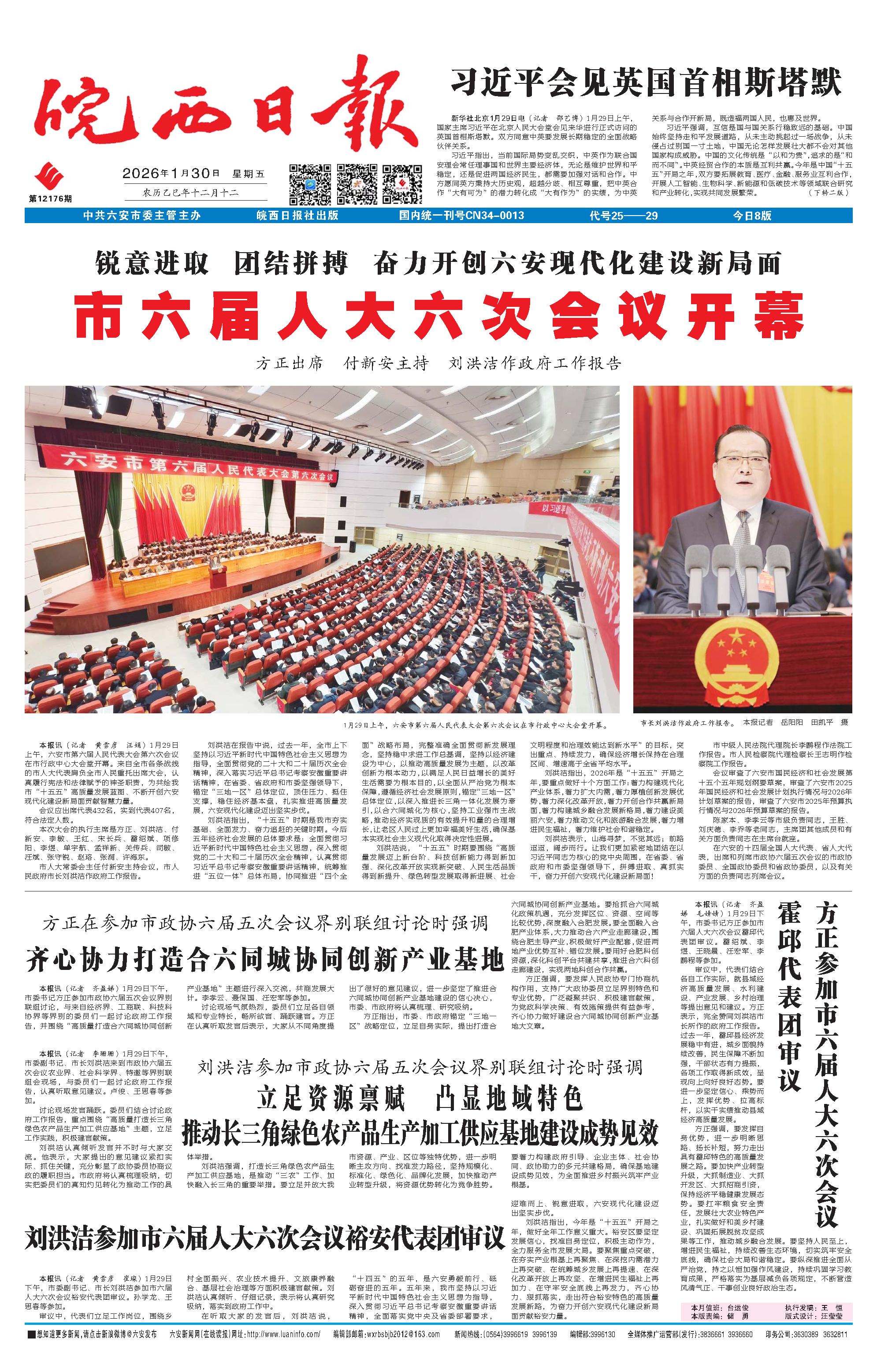 本报记者 岳阳阳 田凯平 摄 本报讯(记者 黄雪彦 汪娟)1月29日上午,六安市第六届人民代表大会第六次会议在市行政中心大会堂开幕。来自全市各条战线的市人大代表肩负全市人民重托出席大会,认真履行宪法和法律赋予的神圣职责,为共绘我市“十五五”高质量发展蓝图、不断开创六安现代化建设新局面贡献智慧力量。 会议应出席代表432名,实到代表407名,符合法定人数。 本次大会的执行主席是方正、刘洪洁、付新安、李敏、王红、宋长兵、霍绍斌、项修阳、李煜、单宇航、孟祥新、关传兵、司敏、汪斌、张守锐、赵珞、张涧、许海东。 市人大常委会主任付新安主持会议,市人民政府市长刘洪洁作政府工作报告。 刘洪洁在报告中说,过去一年,全市上下坚持以习近平新时代中国特色社会主义思想为指导,全面贯彻党的二十大和二十届历次全会精神,深入落实习近平总书记考察安徽重要讲话精神,在省委、省政府和市委坚强领导下,锚定“三地一区”总体定位,顶住压力、挺住支撑,稳住经济基本盘,扎实推进高质量发展,六安现代化建设迈出坚实步伐。 刘洪洁指出,“十五五”时期是我市夯实基础、全面发力、奋力追赶的关键时期。今后五年经济社会发展的总体要求是:全面贯彻习近平新时代中国特色社会主义思想,深入贯彻党的二十大和二十届历次全会精神,认真贯彻习近平总书记考察安徽重要讲话精神,统筹推进“五位一体”总体布局,协同推进“四个全面”战略布局,完整准确全面贯彻新发展理念,坚持稳中求进工作总基调,坚持以经济建设为中心,以推动高质量发展为主题,以改革创新为根本动力,以满足人民日益增长的美好生活需要为根本目的,以全面从严治党为根本保障,遵循经济社会发展原则,锚定“三地一区”总体定位,以深入推进长三角一体化发展为牵引,以合六同城化为核心,坚持工业强市主战略,推动经济实现质的有效提升和量的合理增长,让老区人民过上更加幸福美好生活,确保基本实现社会主义现代化取得决定性进展。 刘洪洁说,“十五五”时期要围绕“高质量发展迈上新台阶、科技创新能力得到新加强、深化改革开放实现新突破、人民生活品质得到新提升、绿色转型发展取得新进展、社会文明程度和治理效能达到新水平”的目标,突出重点、持续发力,确保经济增长保持在合理区间、增速高于全省平均水平。 刘洪洁指出,2026年是“十五五”开局之年,要重点做好十个方面工作:着力构建现代化产业体系,着力扩大内需,着力厚植创新发展优势,着力深化改革开放,着力开创合作共赢新局面,着力构建城乡融合发展新格局,着力建设美丽六安,着力推动文化和旅游融合发展,着力增进民生福祉,着力维护社会和谐稳定。 刘洪洁表示,山海寻梦,不觉其远;前路迢迢,阔步而行。让我们更加紧密地团结在以习近平同志为核心的党中央周围,在省委、省政府和市委坚强领导下,拼搏进取、真抓实干,奋力开创六安现代化建设新局面! 市中级人民法院代理院长李鹏程作法院工作报告。市人民检察院代理检察长王志明作检察院工作报告。 会议审查了六安市国民经济和社会发展第十五个五年规划纲要草案,审查了六安市2025年国民经济和社会发展计划执行情况与2026年计划草案的报告,审查了六安市2025年预算执行情况与2026年预算草案的报告。 陈家本、李孝云等市级负责同志,王胜、刘庆德、李乔等老同志,主席团其他成员和有关方面负责同志在主席台就座。 在六安的十四届全国人大代表、省人大代表,出席和列席市政协六届五次会议的市政协委员、全国政协委员和省政协委员,以及有关方面的负责同志列席会议。