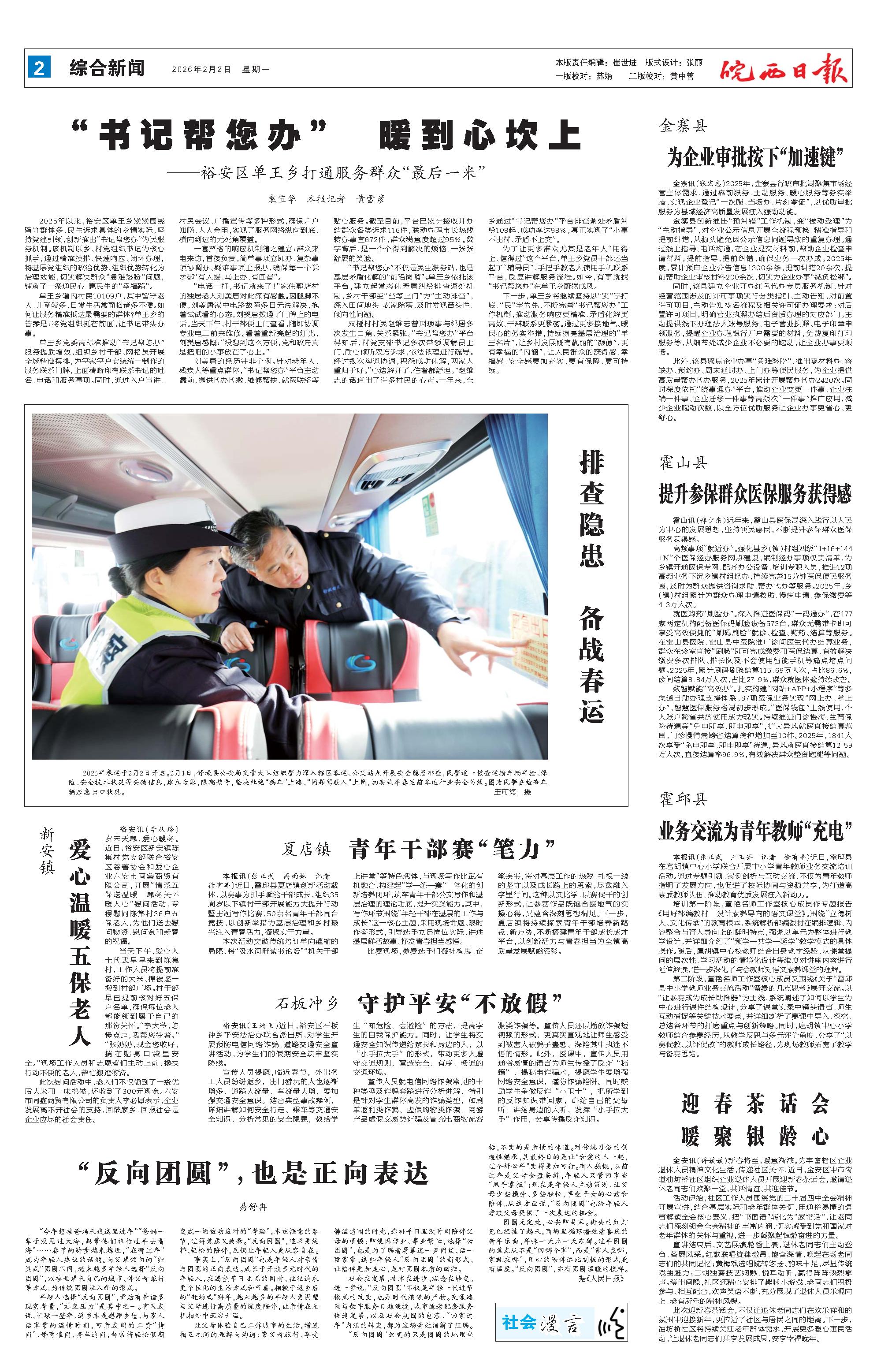 “今年想接爸妈来我这里过年”“爸妈一辈子没见过大海,想带他们旅行过年去看海”……春节的脚步越来越近,“在哪过年”成为年轻人热议的话题。与父辈倾向的“归巢式”团圆不同,越来越多年轻人选择“反向团圆”,以接长辈来自己的城市、伴父母旅行等方式,为传统团圆注入新的形式。 年轻人选择“反向团圆”,背后有着诸多现实考量,“社交压力”是其中之一。有网友说,忙碌一整年,返乡本是慰藉乡愁、与家人话家常的温情时刻,可亲友间的工资“拷问”、婚育催问、房车追问,却常将轻松假期变成一场被动应对的“考验”,本该惬意的春节,过得焦虑又疲惫。“反向团圆”,追求更纯粹、轻松的陪伴,反倒让年轻人更从容自在。 事实上,“反向团圆”也是年轻人对亲情与团圆的正向表达。成长于开放多元时代的年轻人,在渴望节日团圆的同时,往往追求更个性化的生活方式和节奏。相较于返乡后的“赶场式”拜年,越来越多的年轻人更渴望与父母进行高质量的深度陪伴,让亲情在无扰相处中沉淀升温。 让父母体验自己工作城市的生活,增进相互之间的理解与沟通;带父母旅行,享受静谧悠闲的时光,弥补平日里没时间陪伴父母的遗憾;即便因学业、事业繁忙,选择“云团圆”,也是为了隔着屏幕道一声问候、话一段家常。这些年轻人“反向团圆”的新形式,让陪伴更加走心,是对团圆本质的回归。 社会在发展,技术在进步,观念在转变。进一步说,“反向团圆”不仅是年轻一代过节模式的改变,也是时代演进的产物。交通路网与数字服务日趋便捷,城市适老配套服务快速发展,以及社会氛围的包容、“回家过年”内涵的转变,都为这场奔赴消解了阻隔。 “反向团圆”改变的只是团圆的地理坐标,不变的是亲情的味道。对传统习俗的创造性继承,其最终目的是让“和爱的人一起,过个舒心年”变得更加可行。有人感慨,以前过年是父母全盘安排,年轻人只管回家当“甩手掌柜”;现在是年轻人主动策划,让父母少些操劳、多些轻松,享受子女的心意和陪伴。从这方面说,“反向团圆”也给年轻人孝敬父母提供了一次表达的机会。 团圆无定处,心安即是家。街头的红灯笼已经挂了起来,商场里循环播放着喜庆的新年乐曲,年味一天比一天浓郁。过年团圆的焦点从不是“回哪个家”,而是“家人在哪,家就在哪”,用心的陪伴远比刻板的形式更有温度。“反向团圆”,亦有团圆温暖的模样。 据《人民日报》