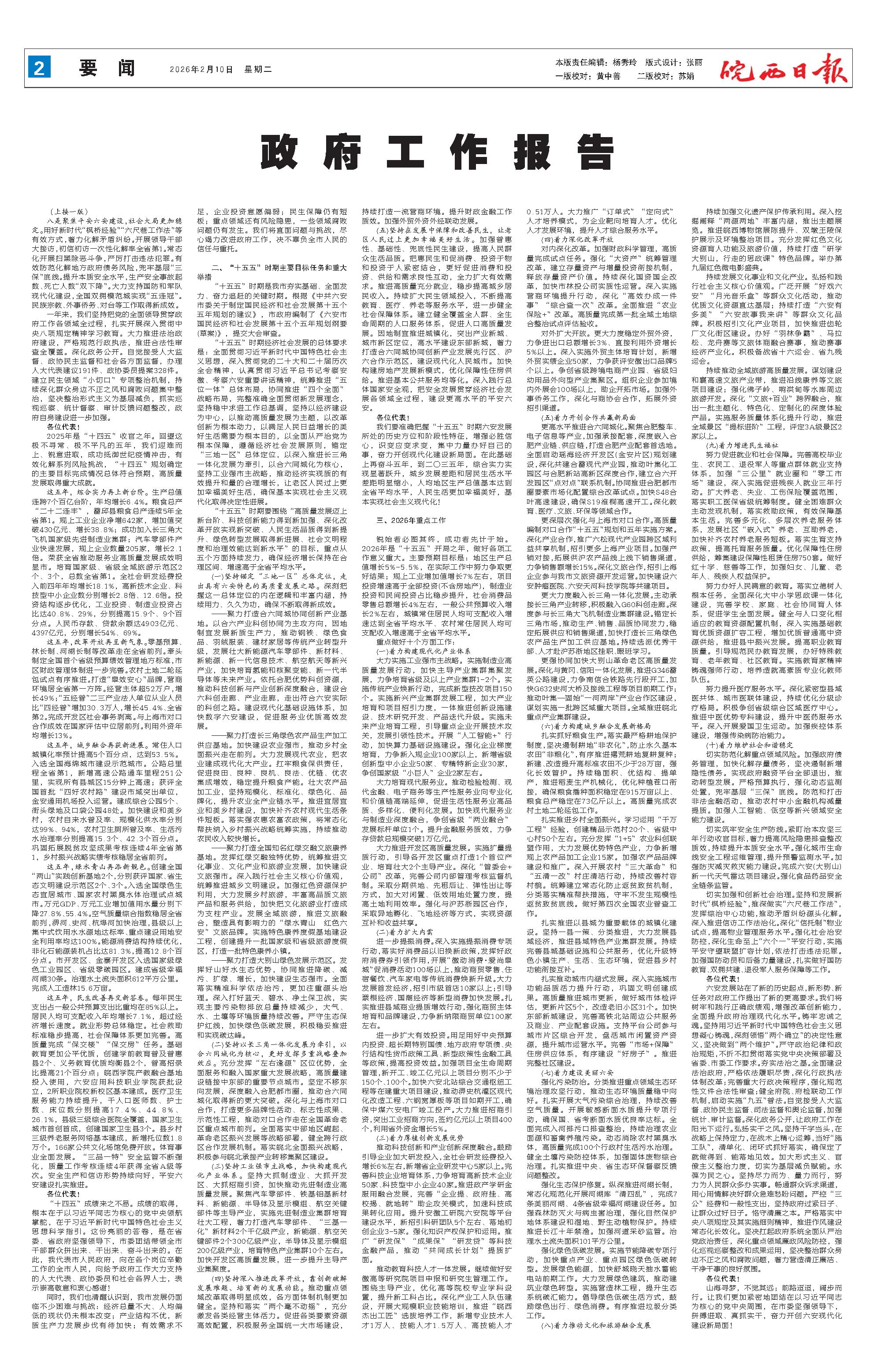 新闻 时间:2026年02月10日 来源:皖西日报