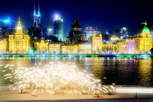 近日,首届“浦东中国年味节”在上海市浦东新区黄浦江畔举行,非遗“打铁花”成为夜色中一道亮丽的风景线。