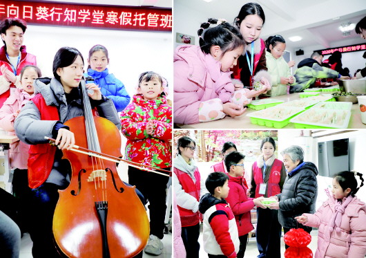寒假期间,金安区望城街道正阳社区以“‘托’起冬日暖阳 共‘管’缤纷寒假”为主题,携手合肥师范学院返乡大学生志愿者开展“向日葵行知学堂”寒假公益托管班,免费为辖区居民及新就业形态劳动者子女提供作业辅导、音乐绘画、书法阅读、手工制作等志愿服务,带领他们参与敬老公益活动,让青少年儿童在托管中锻炼能力、拓展视野、增长知识,既解决了辖区新就业形态劳动者子女假期“看护难”,又让大家在轻松愉快的氛围中度过一个丰富多彩的寒假。
