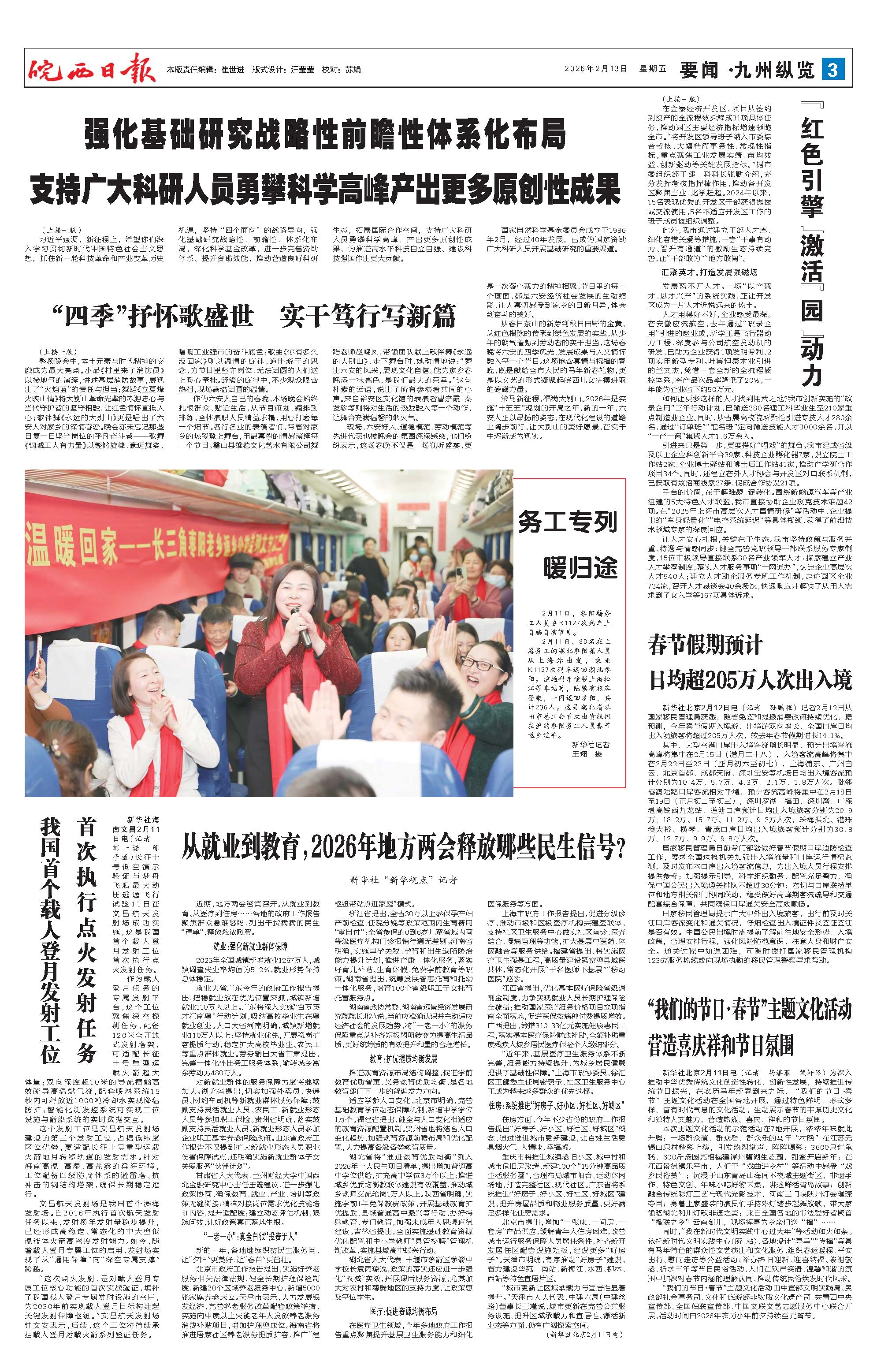 新华社北京2月12日电(记者 孙鹏程)记者2月12日从国家移民管理局获悉,随着免签和提振消费政策持续优化,据预测,今年春节假期入境游、出境游双向增长,全国口岸日均出入境旅客将超过205万人次,较去年春节假期增长14.1%。 其中,大型空港口岸出入境客流增长明显,预计出境客流高峰将集中在2月15日(腊月二十八),入境客流高峰将集中在2月22日至23日(正月初六至初七),上海浦东、广州白云、北京首都、成都天府、深圳宝安等机场日均出入境客流预计分别为10.4万、5.7万、4.3万、2.1万、1.8万人次。毗邻港澳陆路口岸客流相对平稳,预计客流高峰将集中在2月18日至19日(正月初二至初三),深圳罗湖、福田、深圳湾、广深港高铁西九龙站、莲塘口岸预计日均出入境旅客分别为20.9万、18.2万、15.7万、11.2万、9.3万人次,珠海拱北、港珠澳大桥、横琴、青茂口岸日均出入境旅客预计分别为30.8万、12.7万、9.9万、9.8万人次。 国家移民管理局日前专门部署做好春节假期口岸边防检查工作,要求全国边检机关加强出入境流量和口岸运行情况监测,及时发布本口岸出入境客流信息,为出入境人员行程安排提供参考;加强提示引导,科学组织勤务,配置充足警力,确保中国公民出入境通关排队不超过30分钟;密切与口岸联检单位和地方相关部门协同联动,稳妥做好高峰期客流疏导和交通配套综合保障,共同确保口岸通关安全高效顺畅。 国家移民管理局提示广大中外出入境旅客,出行前及时关注口岸客流变化和通关情况,仔细检查出入境证件及签证签注是否有效。中国公民出境时需提前了解前往地安全形势、入境政策,合理安排行程,强化风险防范意识,注意人身和财产安全。通关过程中如遇困难,可随时拨打国家移民管理机构12367服务热线或向现场执勤的移民管理警察寻求帮助。