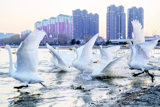 辽宁朝阳:大凌河畔 天鹅翩跹