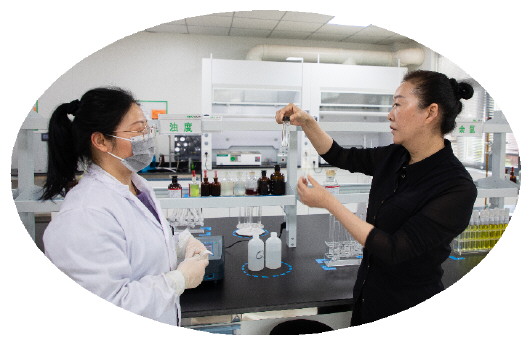 图为葛菁玲(右)正在同负责水质检测的工作人员进行业务交流。(资料图片)