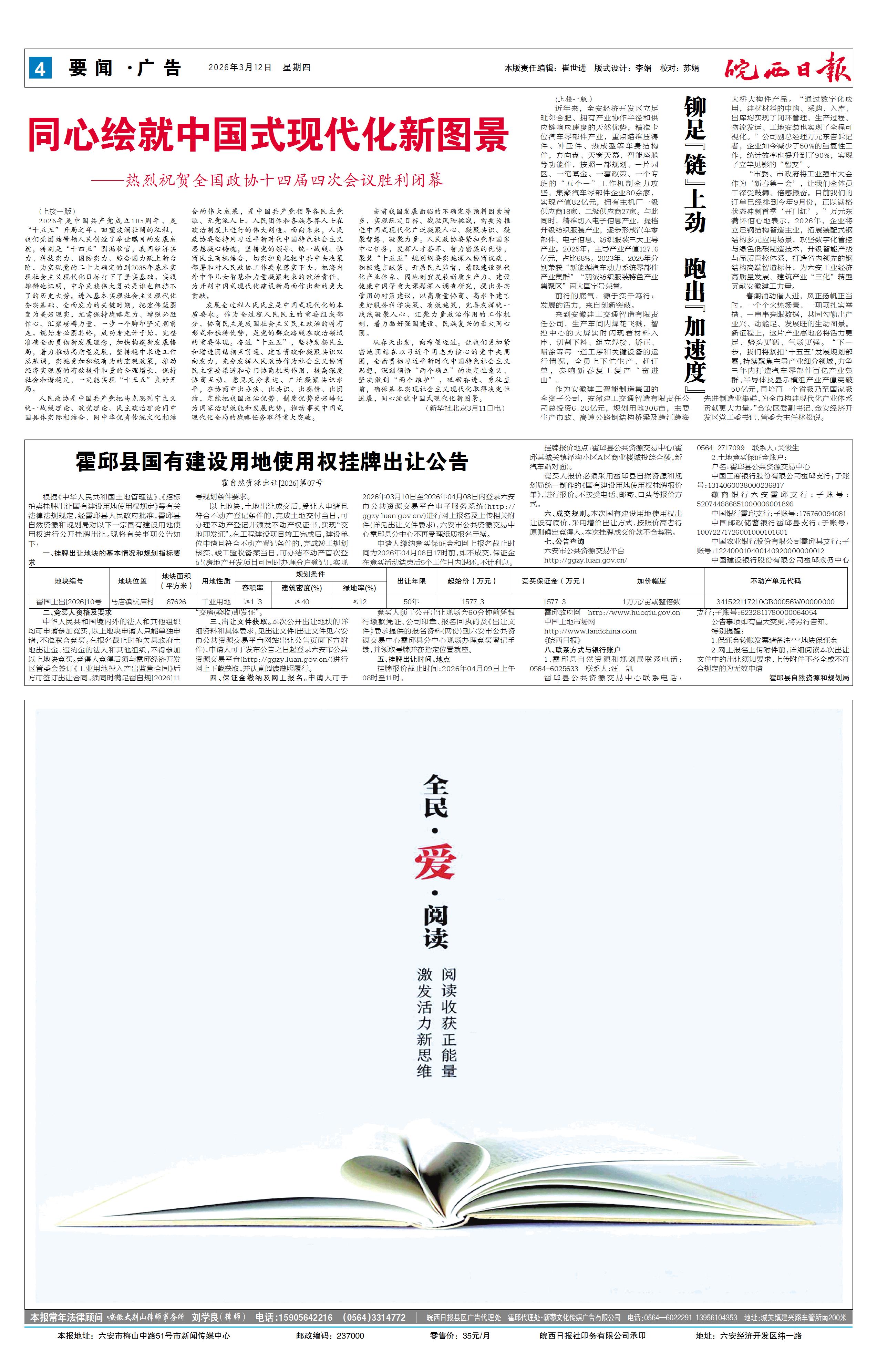 新闻 时间:2026年03月12日 来源:皖西日报