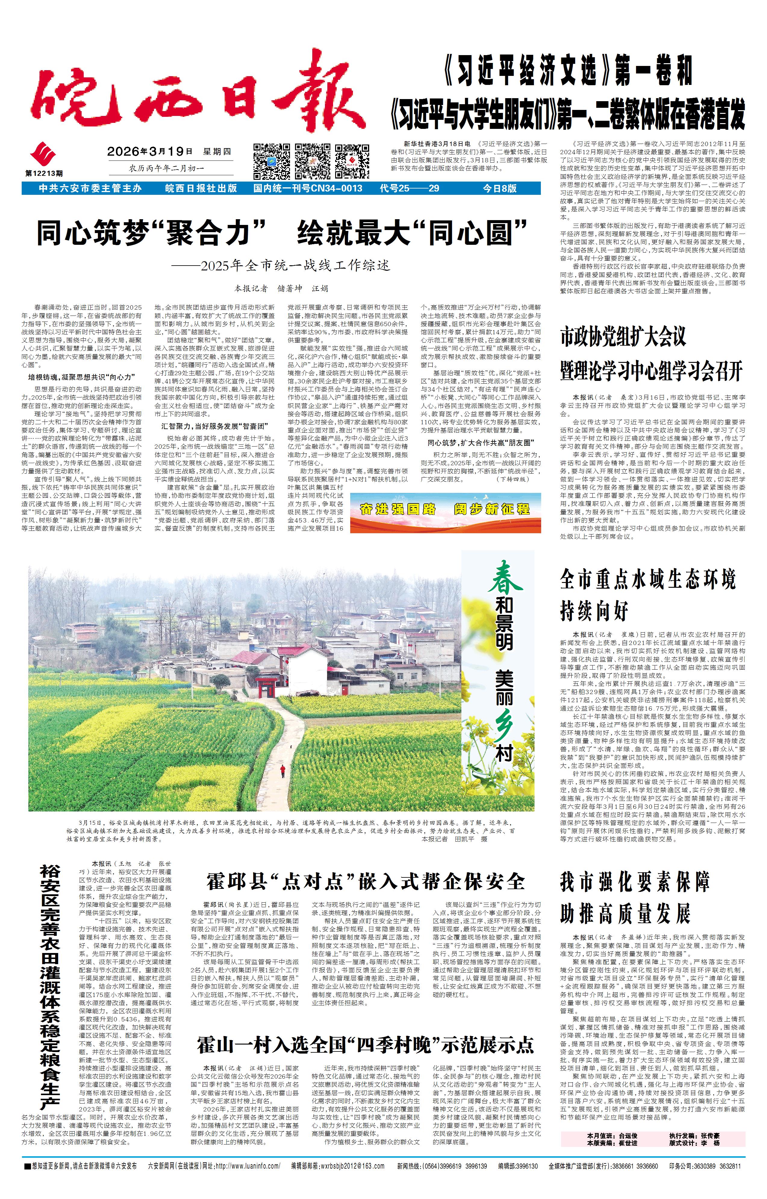 本报讯(王旭 记者 张世巧)近年来,裕安区大力开展灌区节水改造、农田水利基础设施建设,进一步完善全区农田灌溉体系,提升农业综合生产能力,为保障粮食安全和重要农产品稳产提供坚实水利支撑。 “十四五”以来,裕安区致力于构建设施完善、技术先进、管理科学、用水高效、生态良好、保障有力的现代化灌溉体系。先后开展了淠河总干渠金杯支渠、汲东干渠史小圩支渠续建配套与节水改造工程,重建汲东干渠吴家岸泄洪闸、鲍家杠泄洪闸等。结合水网工程建设,推进灌区175座小水库除险加固、灌溉水源挖潜改造,提高灌溉供水保障能力,全区农田灌溉水利用系数提升到0.5436。推进现有灌区现代化改造,加快解决现有灌区设施不足、配套不全、标准不高、老化失修、安全隐患等问题,并在水土资源条件适宜地区新建一批节水型、生态型灌区。持续推进小型灌排设施建设、高标准农田的水利设施建设和数字孪生灌区建设。将灌区节水改造与高标准农田建设相结合,全区已建成高标准农田46万亩,2023年,淠河灌区裕安片被命名为全国节水型灌区。同时,开展农业水价改革,大力发展喷灌、滴灌等现代设施农业,推动农业节水增效,全区农田灌溉用水量多年控制在1.96亿立方米,以有限水资源保障了粮食安全。