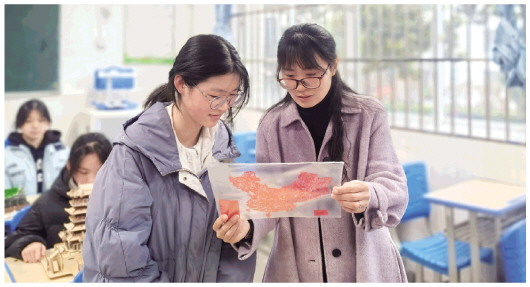 “我们不是让学生死记硬背或者刷题,而是多方面设计一些拓展思维的作业,让他们走出课堂、走进自然、走向社会。”胡家菊说,“实践、观察、探究、生活,这是我们一直在地理教学中抓住的核心。”