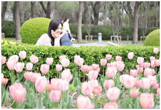 3月22日,市民在上海世纪公园内拍照。