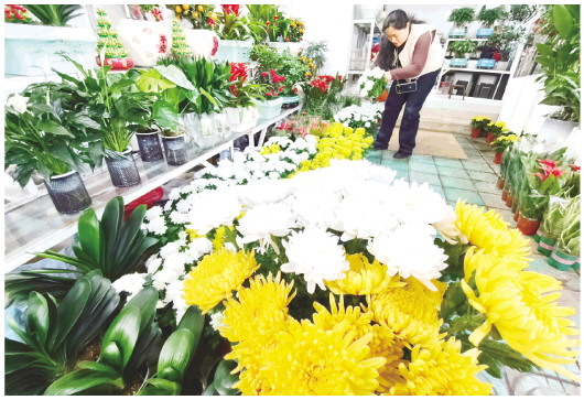 3月25日上午,六安市城区庆安街花卉市场内,白菊、黄菊等祭祀用花迎来销售高峰,不少市民前来挑选,以鲜花寄托哀思,践行文明祭祀。据商家介绍,清明临近,近期菊花销量较平日明显增长,相比焚烧纸钱,越来越多的市民用鲜花祭扫,既缅怀先人,也守护了城市环境。