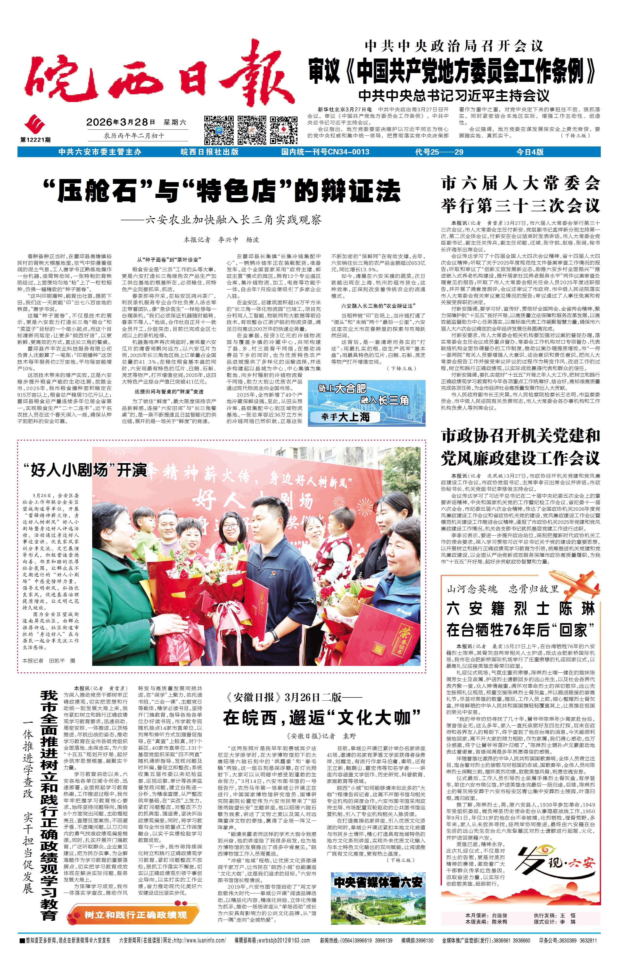 皖西日报 新闻    时间:2026年03月28日    来源:皖西日报